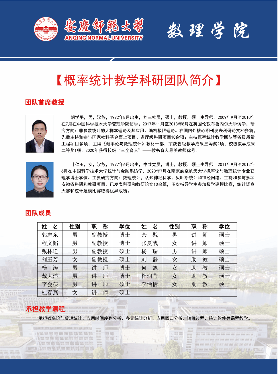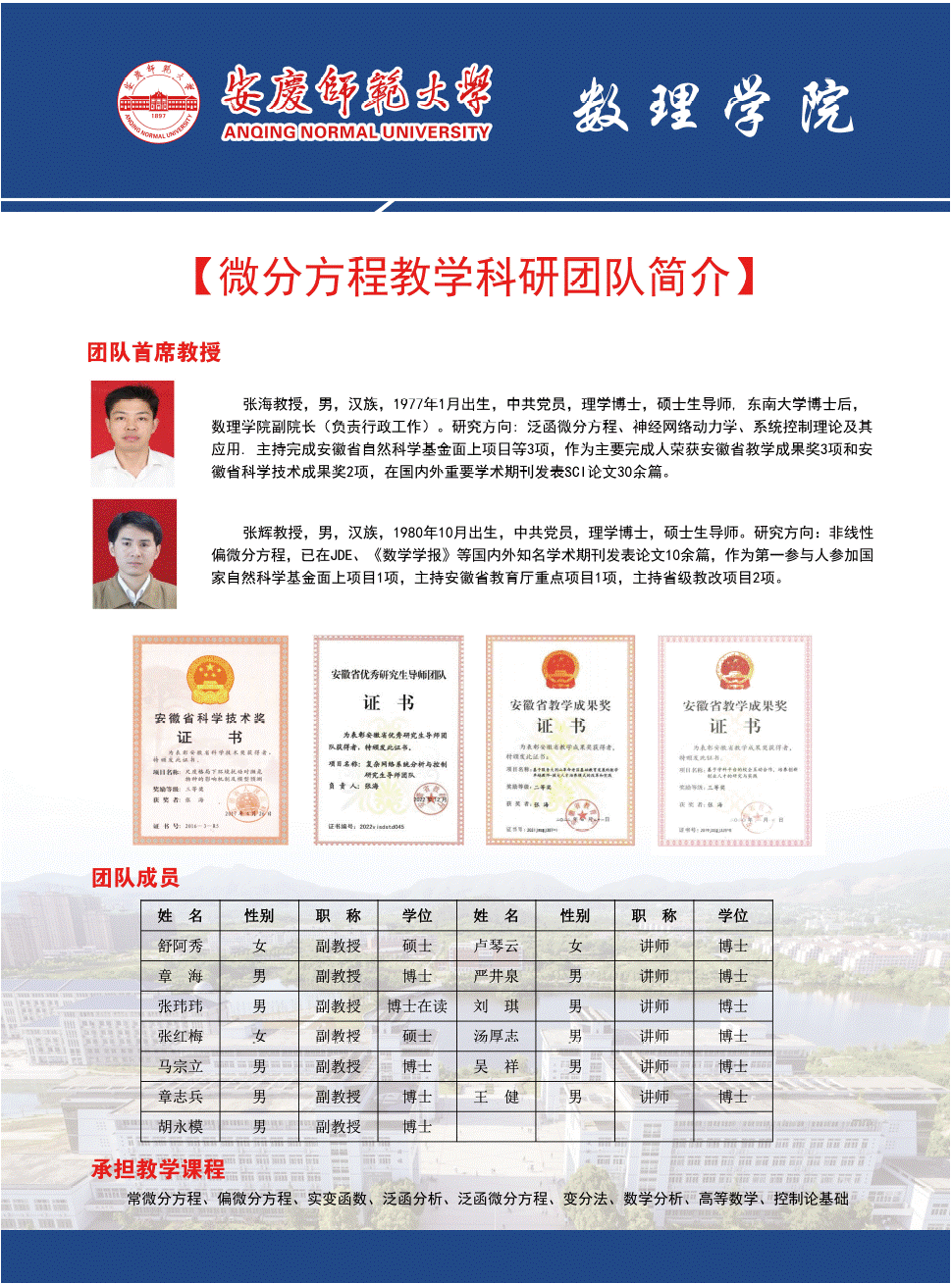 为有效整合数理学院教学、科研与社会服务力量,形成特色鲜明、持续稳定的学科专业发展方向,提升学院整体教科研水平与社会服务能力,更好地助推学院实现高质量发展,组建编码图论、微分方程、复杂系统、天文与天体物理、凝聚态物理、光学、信息计算和概率统计8个教学科研团队如下: