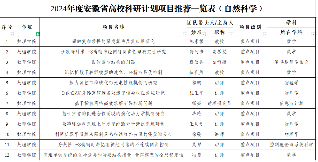数理学院获批2024年度安徽省高校科研计划项目12项