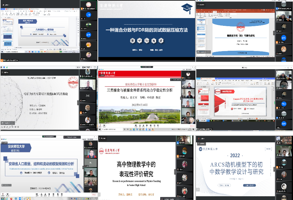 4月16日,数理学院顺利完成了数学、学科数学、学科物理三个硕士点2022届硕士研究生论文线上预答辩工作。参加本次预答辩的35名研究生分别安排在9个预答辩小组进行,每个预答辩组由1名组长、3-4名专家老师和1名答辩秘书组成,本次线上预答辩共有48名专家老师和120余名在读研究生参加。