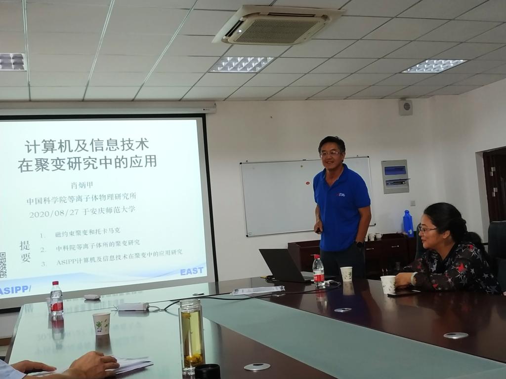 受数理学院邀请,8月27日下午14:30,中国科学院合肥物质科学研究院首席科学家、博士生导师肖炳甲教授在数学楼I301教室作了一场题为“计算机在聚变研究中的应用”专题报告。该报告由数理学院经理申传胜教授主持,学院部分老师,2018级、2019级全体研究生以及部分本科生聆听了报告。