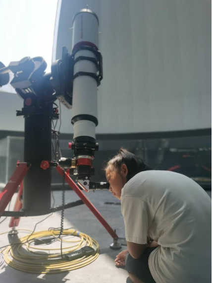 徐骏博士从凸透镜和凹透镜开始,讲解了望远镜的发明历程,并介绍了天文望远镜在颠覆“地心说”,确立行星运行理论上所作出的贡献。徐骏博士带领同学们组装了牛顿反射式望远镜,并演示了折射式、反射式、折反式望远镜的不同,还介绍了现代望远镜的发展。最后,徐骏博士还带领同学们使用望远镜望远镜观测日珥了。