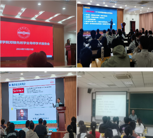 举办此系列专题报告会是数理学院推动卓越拔尖人才培养的重要举措,学院为2023级、2024级邓稼先班员工配备学业导师予以全程指导,旨在进一步夯实邓稼先班员工的学科基础,提升卓越拔尖人才培养质量。(撰稿/摄影:柳静怡、喻静恬等;审核:张海)