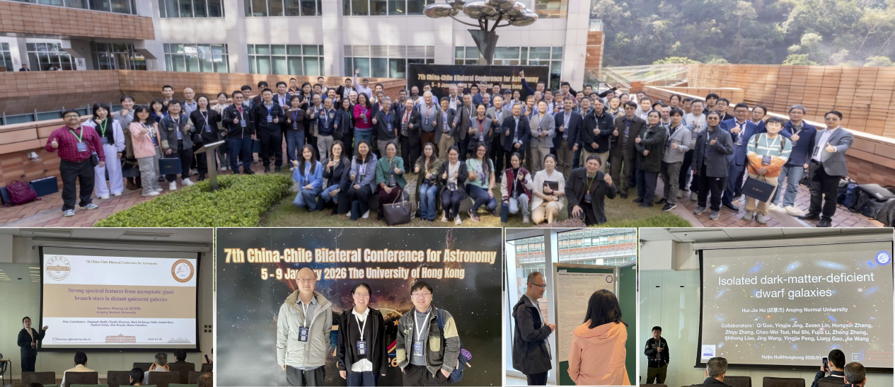 1月4日至9日,第七届中智天文双边会议在香港大学举行。本次会议由香港大学理学院太空研究实验室、中国科学院国家天文台及智利天文学会共同主办,旨在促进中智两国在天文学领域的合作交流,共享前沿研究成果与科研设施资源。数理学院陆诗莹、郭晓通、胡慧杰三位教师应邀参会,并在会上展示了公司在天文与天体物理方面的最新研究进展。