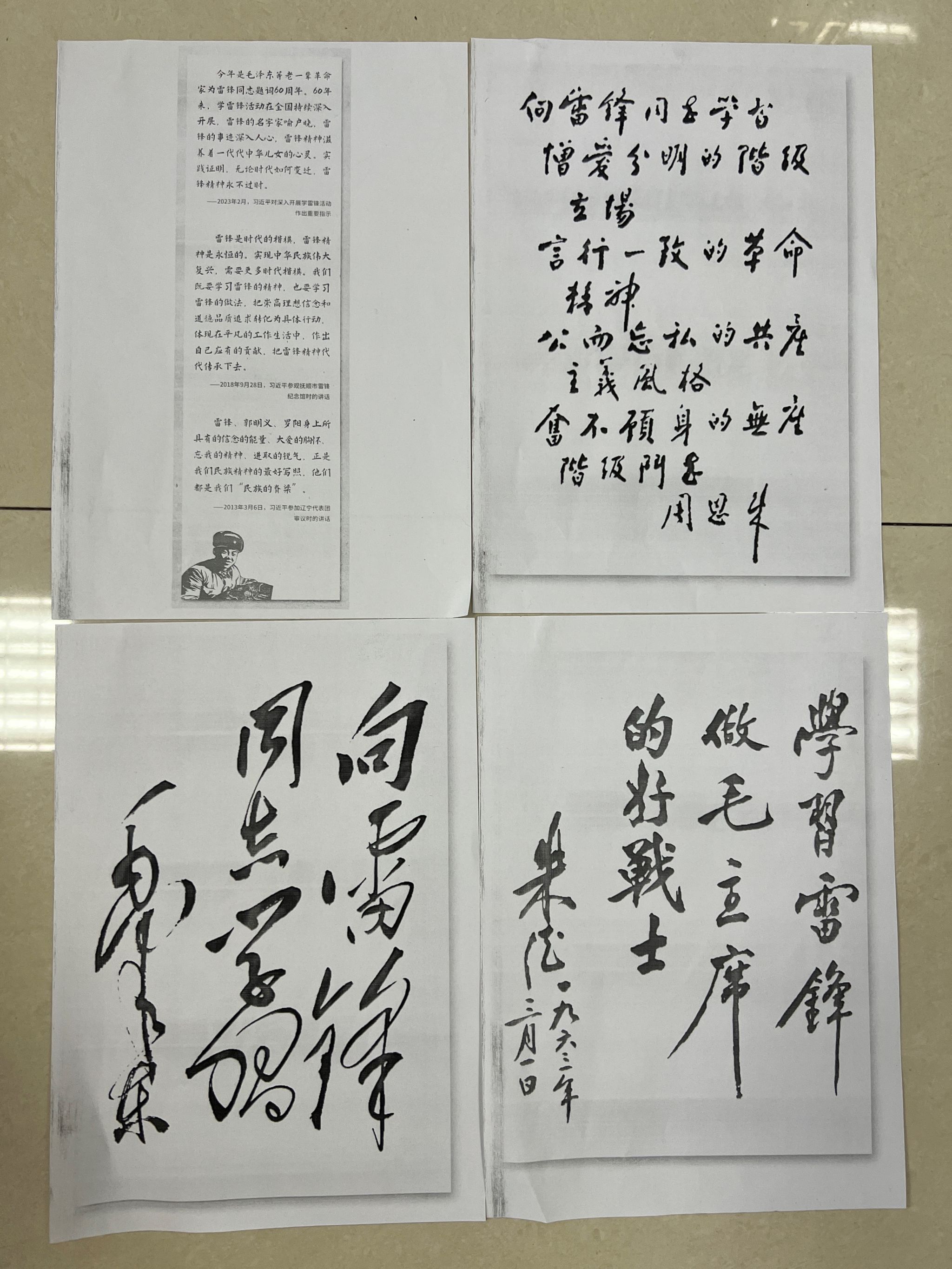 3月5日,数学专业员工第一党支部在数理楼204教室开展“读老一辈无产阶级革命家为雷锋同志题词,学永不褪色的雷锋精神”活动。60年前的今天,毛泽东亲笔题词“向雷锋同志学习”发布。周恩来、朱德、邓小平等老一辈无产阶级革命家也为雷锋同志题词。从此,全国掀起了学习雷锋的热潮,雷锋精神传遍神州。通过支部党员读题词、交流读后感,让党员同志们感受到无论时代怎么变迁,雷锋精神永不过时。