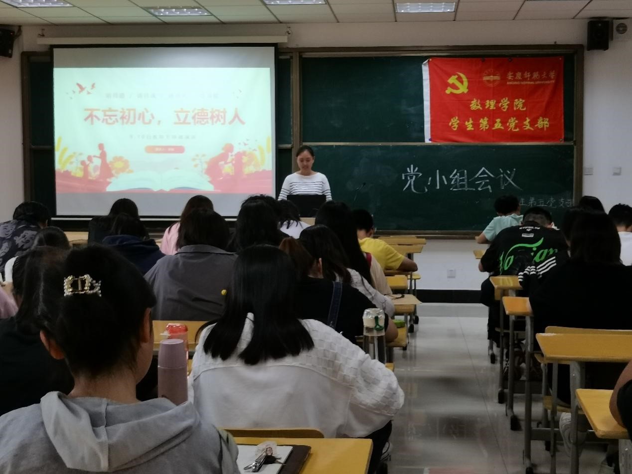 为深入学习2022最美教师的崇高精神,传递立德树人的正能量,营造浓厚的尊师重教氛围,2022年9月28日下午两点半,数理学院员工第五党支部开展了以“最美教师”为主题的党小组会议。此次会议由徐怡同志主持,支部正式党员,预备党员,入党积极分子参加了此次会议。