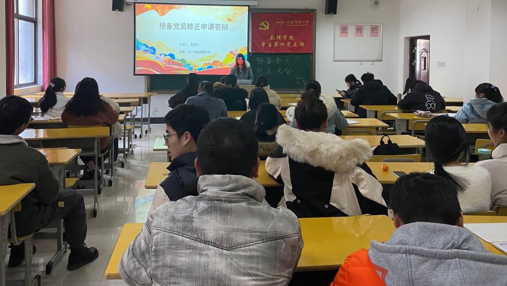 12月29日下午两点,数理学院员工第四党支部在数学楼201教室成功召开预备党员转正支部大会。本次转正支部大会由周天赋同志主持,支部书记潘美玲老师和支部正式党员、预备党员、发展对象参加了此次大会。