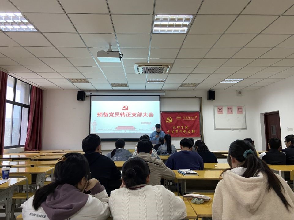 3月30日下午三点半,数理学院员工第四党支部在数学楼201教室成功召开预备党员转正支部大会,参加此次会议的有党支部全体党员、预备党员以及发展对象,会议由党支部书记潘美玲老师主持。