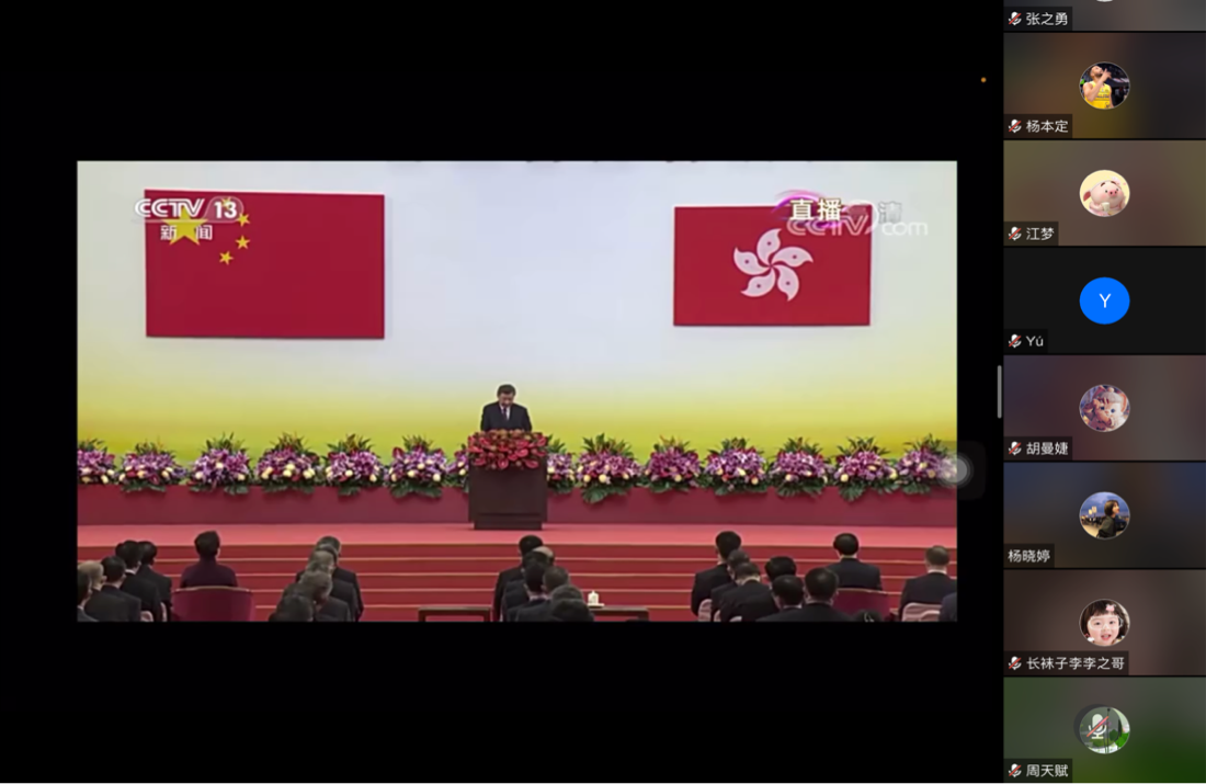 本次活动的第一个流程为全体正式党员和预备党员观看《习近平在庆祝香港回归祖国25周年大会暨香港特别行政区第六届政府就职典礼上的讲话》,所有党员及预备党员同志集体线上观看视频进行学习。