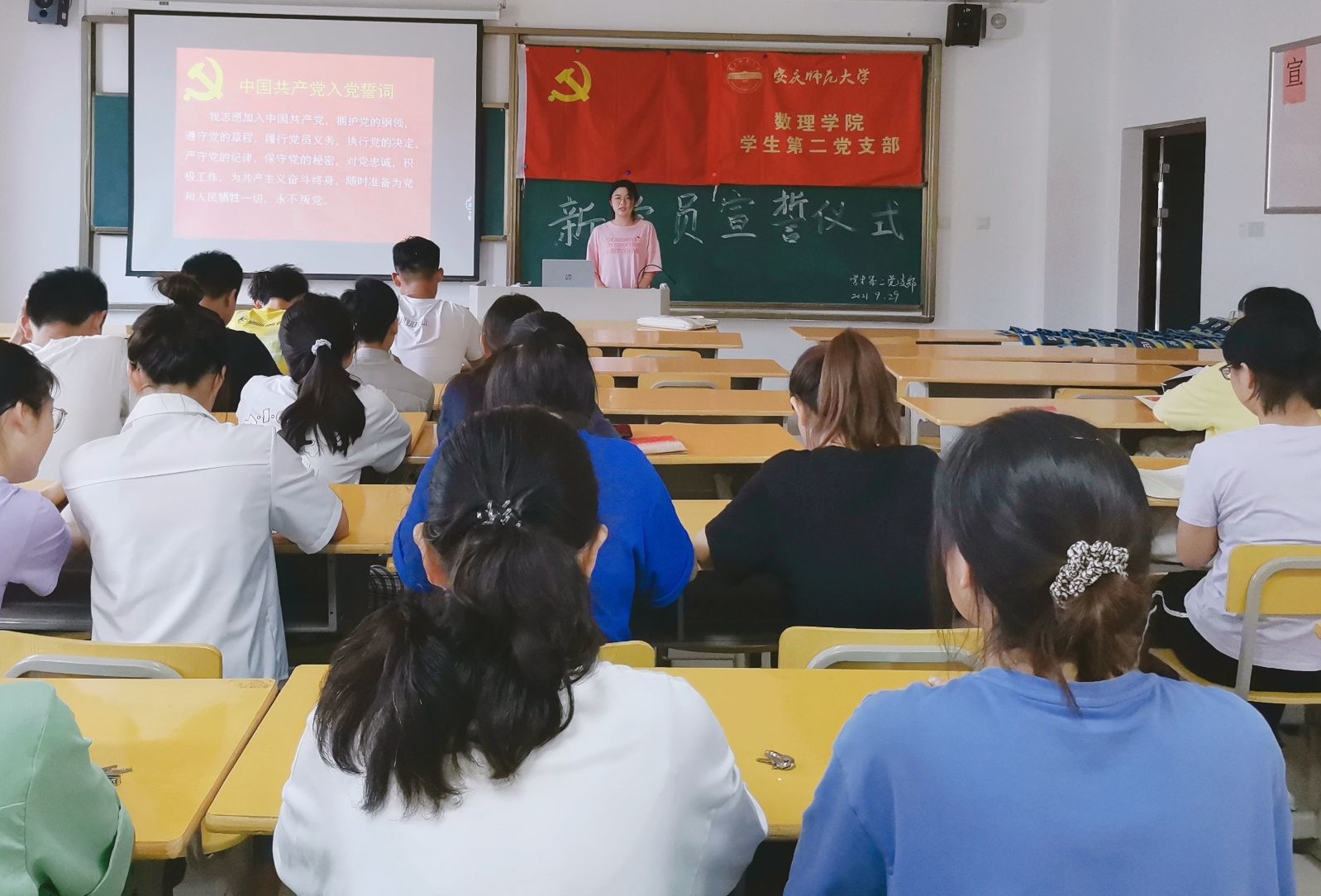 9月29日下午两点,数理学院员工第二党支部在数学楼502教室举行了新党员入党宣誓仪式。此次入党宣誓仪式由周子豪同志主持,支部书记滕秀花老师和支部正式党员、预备党员、发展对象参加了此次会议。