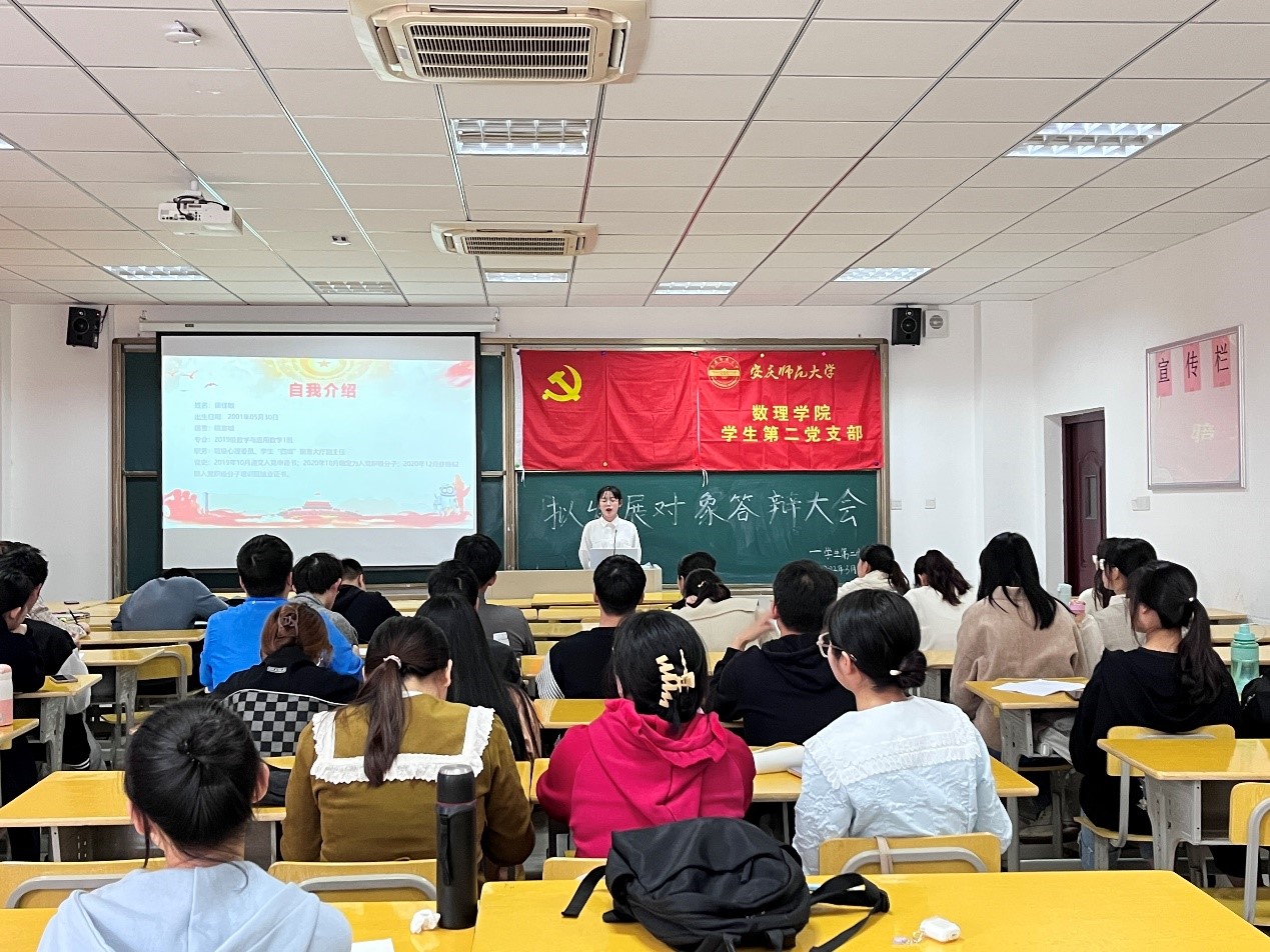 3月30日下午一点,数理学院员工第二党支部在数学楼502教室成功召开拟发展对象答辩大会。本次答辩大会由周子豪同志主持,支部书记滕秀花老师和支部正式党员、预备党员、拟发展对象、入党积极分子参加了此次大会。