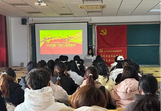 12月25日,数学专业员工第一党支部开展主题党日活动,庆祝澳门回归25周年,同时,对期末反电诈再次进行了宣传。