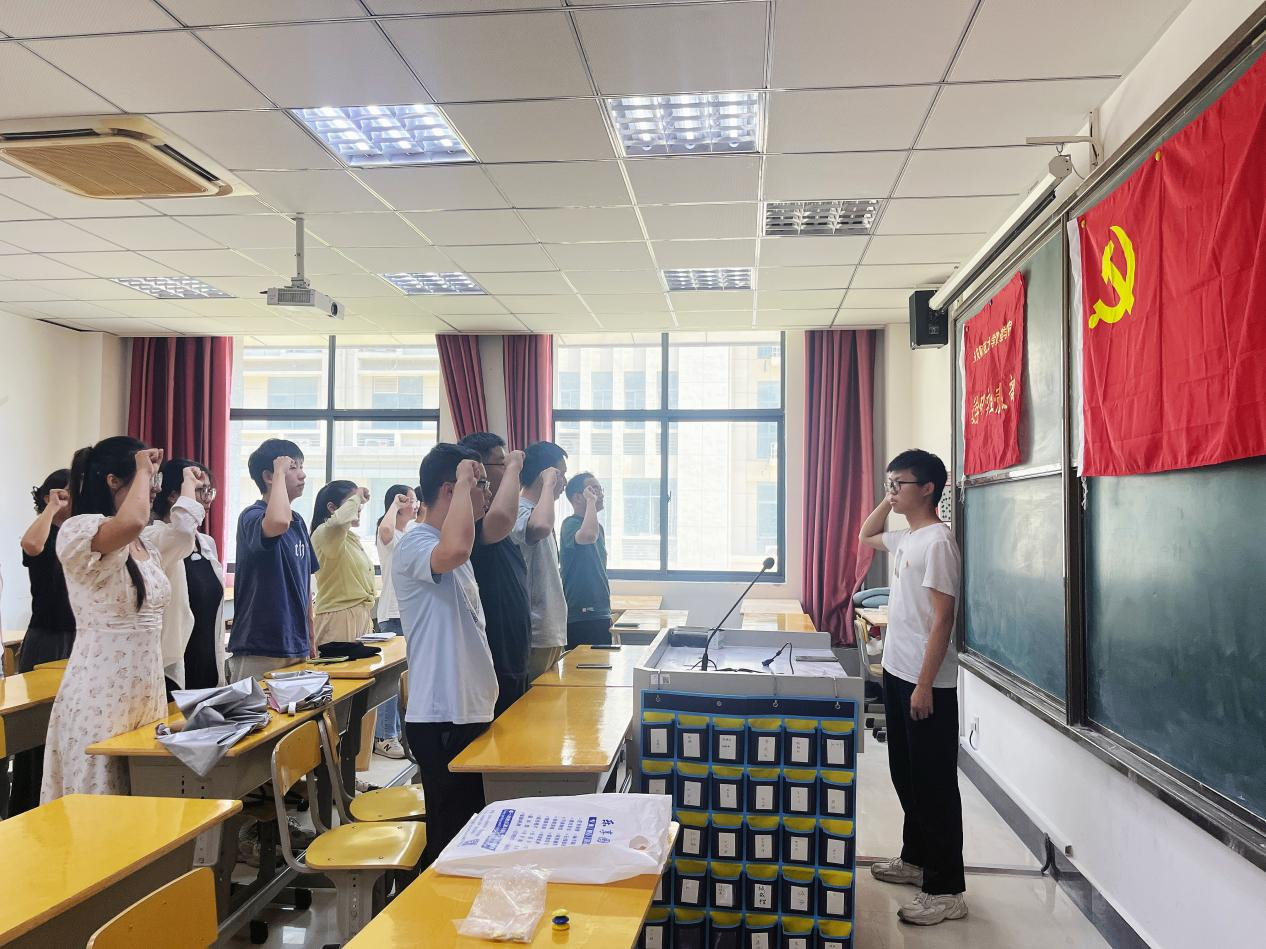 党课结束后,数学研究生党支部全体党员前往I203教室,开展“戴党徽,亮身份,重温入党誓词”活动。党员同学通过佩戴党员徽章,回顾党的104年发展历史,重温入党誓词,铭记入党初心,坚定了为共产主义奋斗终身的理想信念,进一步树牢全心全意为人民服务的宗旨意识。