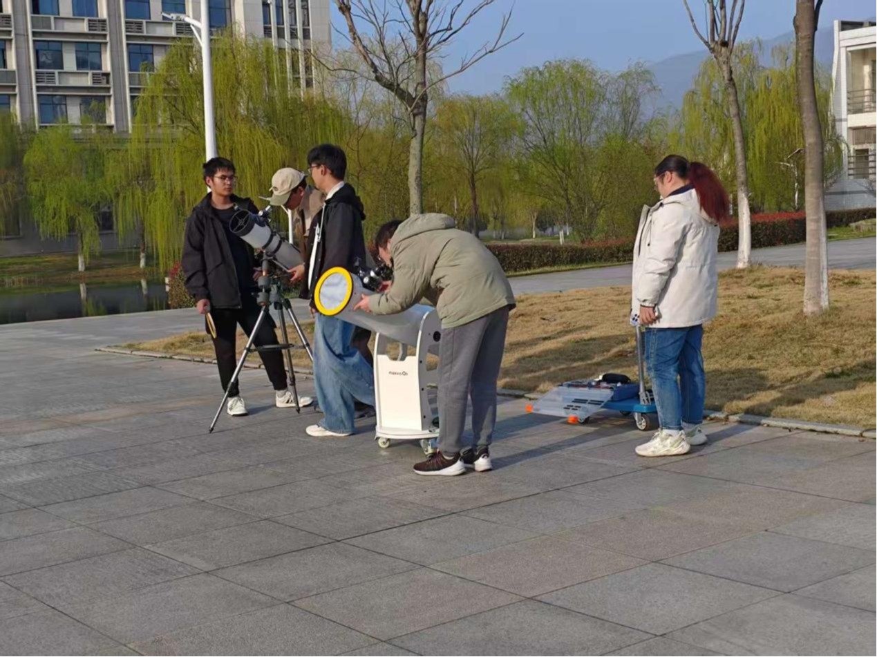 3月21日,春分节气到来之际,在昼夜平分、万物生发的美好时节,由老员工心理健康教育与服务中心主办,老员工天文爱好者协会、数学与统计学院、tyc8722太阳集团心理健康工作站联合承办的“春分踏青·不负春光”主题活动在数理学院楼下温情举行。数十名同学齐聚春日黄昏,在专业望远镜中仰观天象,于星辉流转间感悟节气智慧,在静谧苍穹下寻得内心安宁。