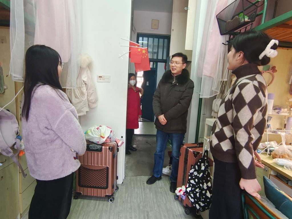 2月11日,学院领导班子和辅导员老师深入员工宿舍进行走访调研。公司党委书记陆健关切询问同学们寒假期间的学习生活情况,并嘱咐他们认真复习,做好开学后期末考试的相关准备工作。要求同学们以更加饱满的热情迎接新学期、新课程,争取学以致用,学有所成。同时提醒大家注意个人卫生习惯,加强锻炼,做好自我防护,当好自身健康第一责任人。(撰稿/摄影:黄兴强;审核:彭芳珍)