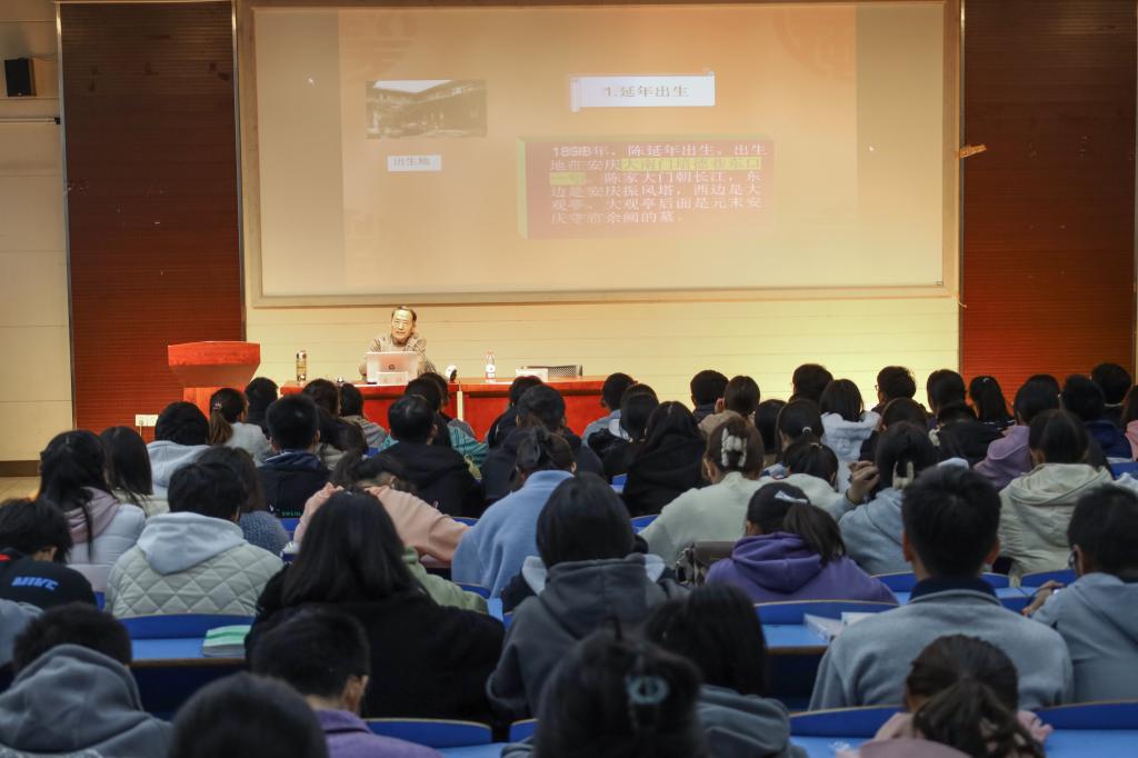 11月16日下午,数理学院邀请安庆师范大学关心下一代工作委员会委员、中国作家协会会员朱洪教授做报告。学院240余名2022级新生到场聆听。报告由公司党委副书记彭芳珍主持。