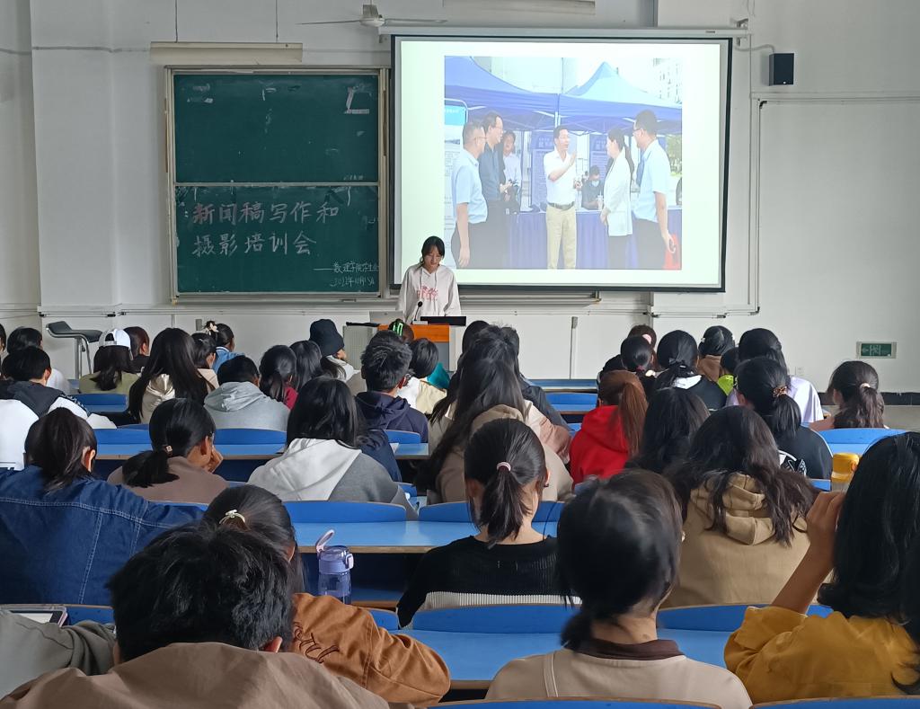 10月15日,数理学院在文溯楼208教室举办新闻稿写作和摄影知识培训会,培训会邀请到学校老员工记者团成员为同学们讲解新闻采写和新闻摄影相关知识。数理学院员工会全体成员及团委宣传部成员参加了此次培训会。