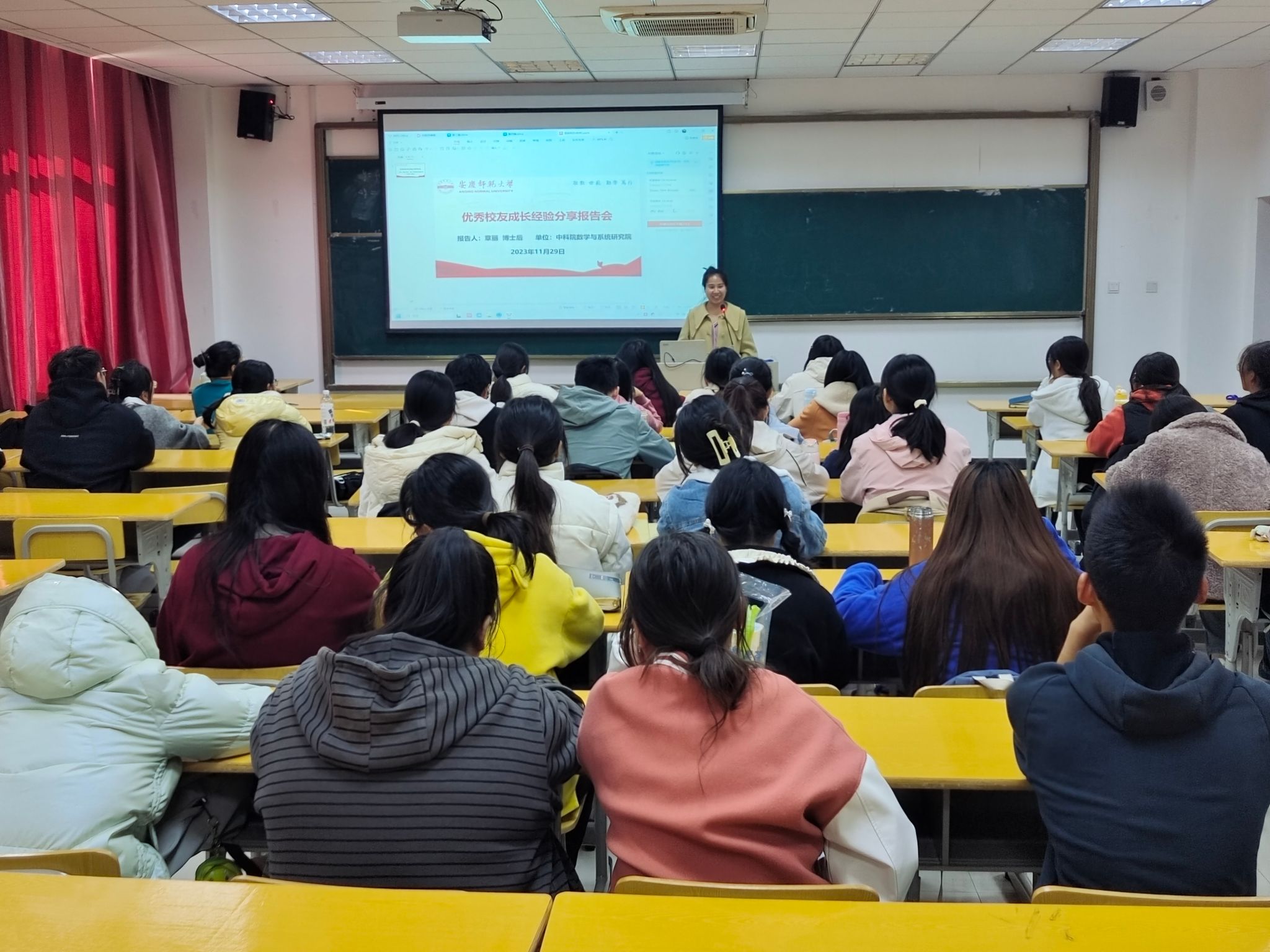 11月29日,数理学院在数理楼204教室举办优秀员工成长经验分享报告会。学院特邀请优秀员工、中国科学院数学与系统研究院博士后章丽作经验交流分享。公司党委副书记彭芳珍主持报告会,数学类稼先班员工和辅导员老师近100人参会。