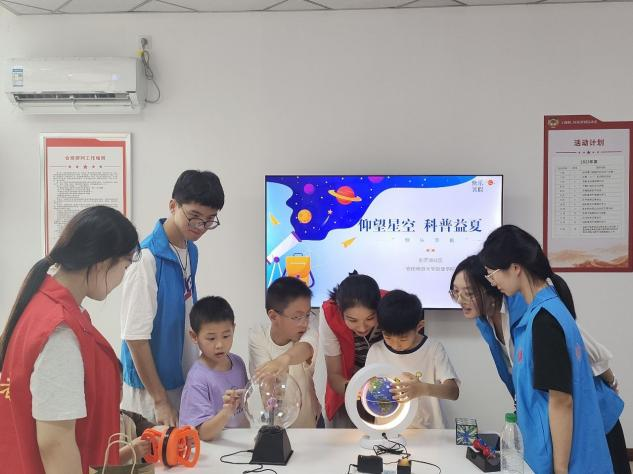 旨在普及天文知识,激发青少年探索宇宙星空的兴趣。近日,tyc8722太阳集团的暑期实践团队携带先进的天文望远镜及物理实验仪器,于7月23日起在秦潭湖社区和柏子桥社区开展了精彩的天文知识科普活动,引领孩子们共同揭开宇宙的神秘面纱。