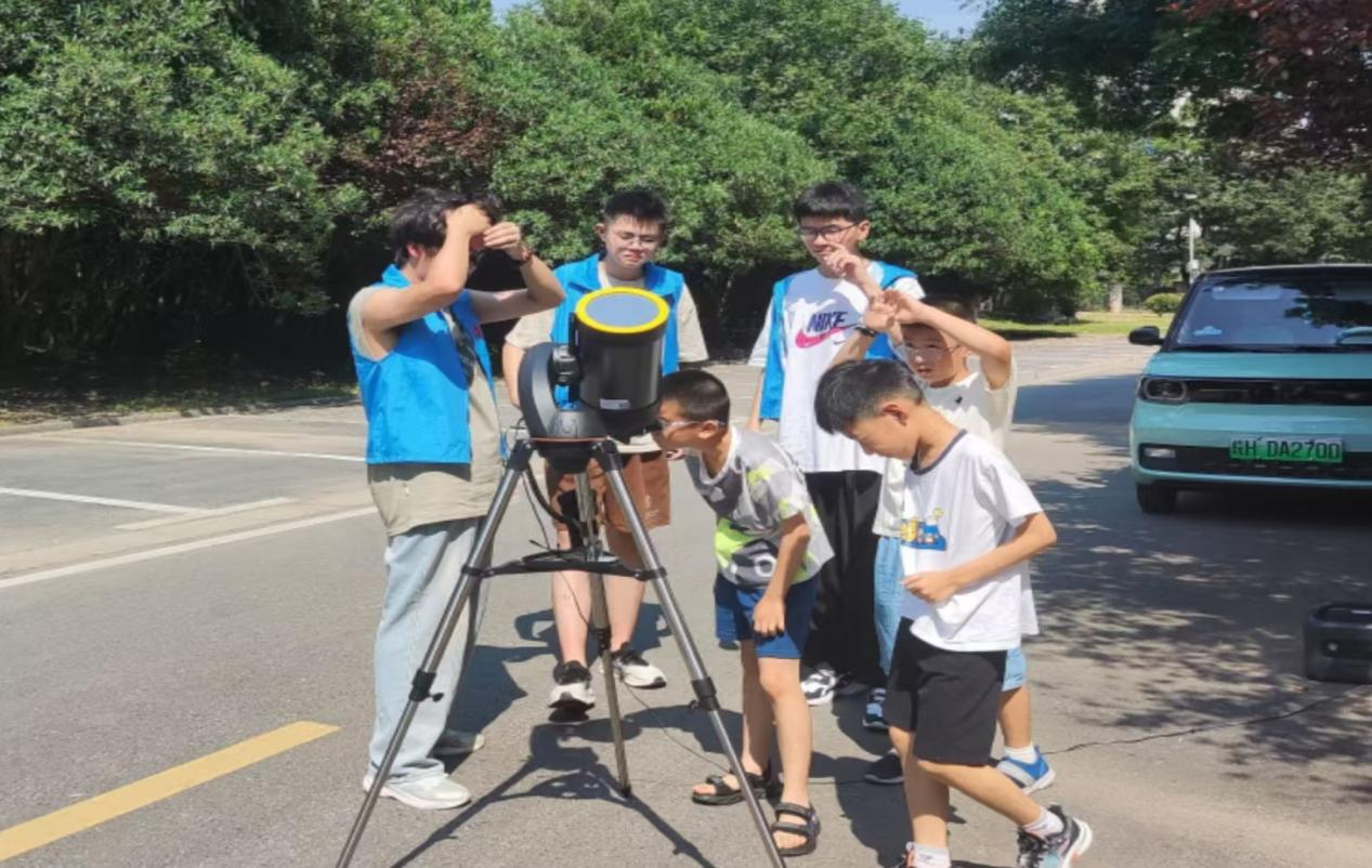 太阳是人类的母恒星,是万物生长的能量来源。志愿者们向孩子们普及了太阳活动周期及太阳黑子的相关知识,并对如何安全地使用天文望远镜来观测太阳进行了详细介绍,确保每一位参与者都能够亲手操作望远镜,体验观测的乐趣。
