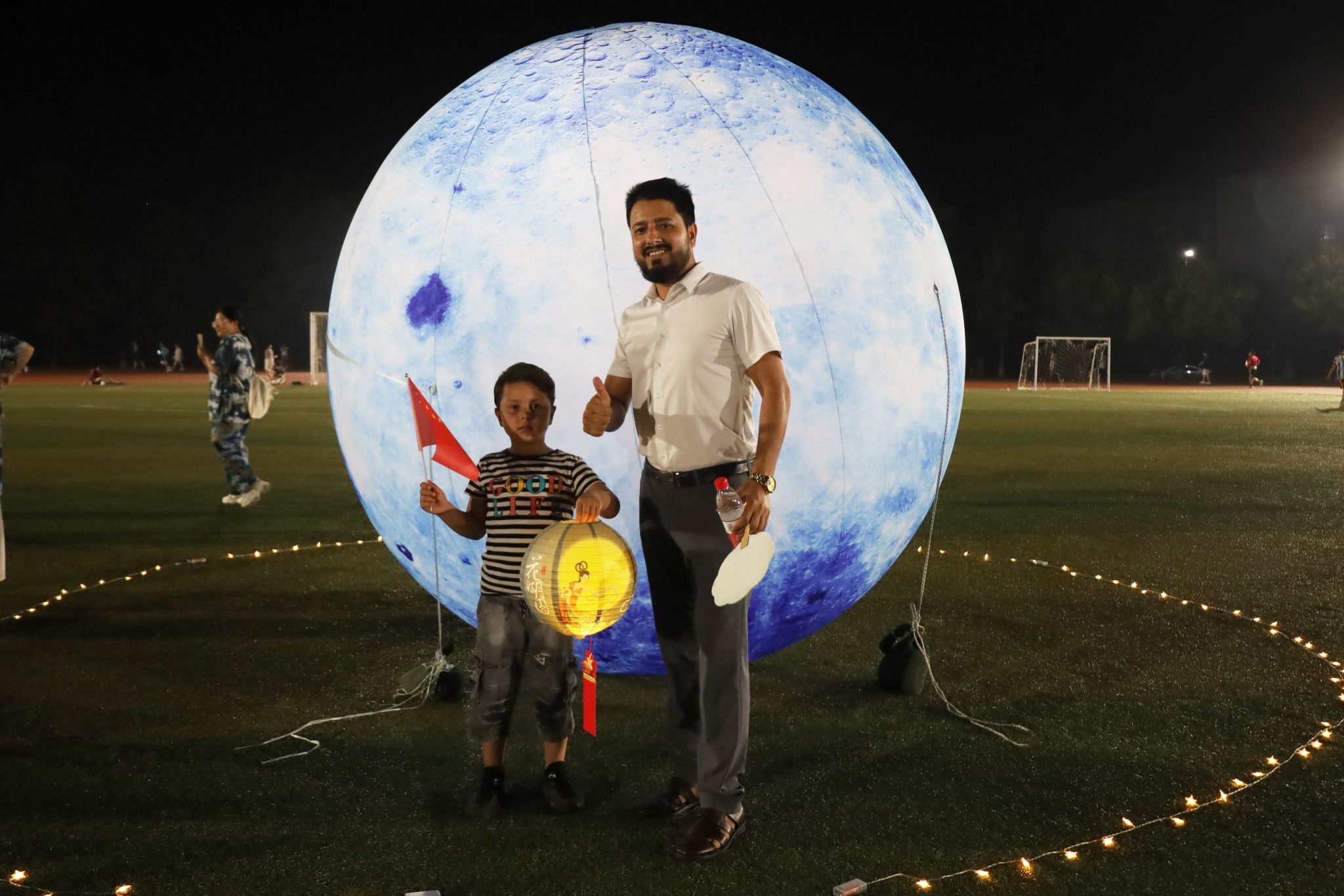 “我的员工说今天晚上有很多有趣的活动,可以展现富有生命力的中华文化。”来自数理学院的外籍教师穆拉德说,中国与巴基斯坦友好往来,这是他来到安庆师范大学的第二年。在今晚的游园会中,他使用天文望远镜观月,聆听笛筝吹奏《浮光》,与众多员工在月球打卡点拍照,“我制作了一个灯笼给我的孩子,中秋节是中国传统节日,中国很美,安庆很美。”穆拉德说。