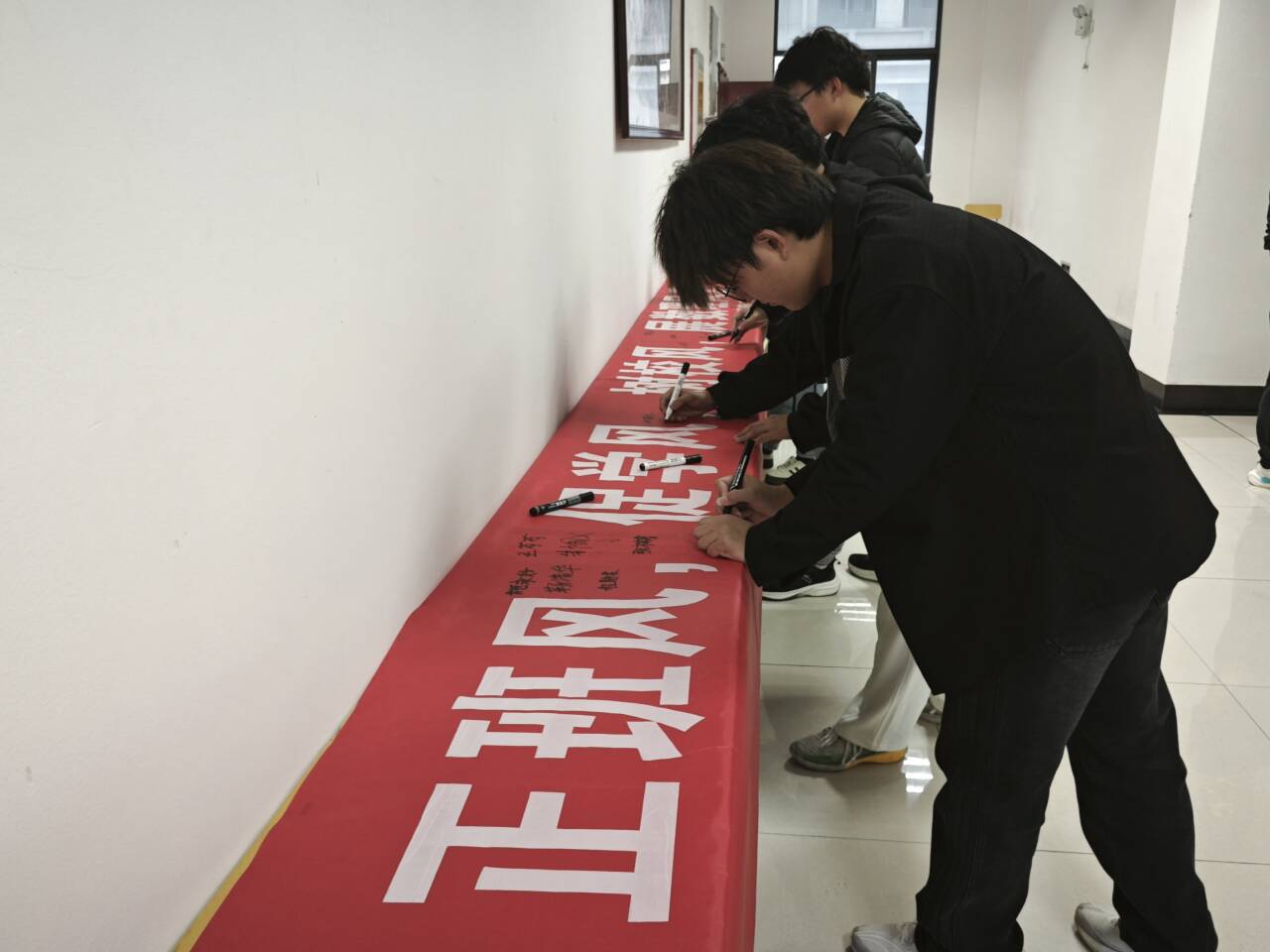 随后,学院员工会主席、信息与计算科学专业2022(1)班伍宇同带领全体同学领誓《数理学院加强学风班风建设倡议书》。全体员工在学风建设月活动的横幅上签字。“学风建设月活动于我而言是一次激励,也让我明白了榜样的力量,日后的学习中我会不断朝着榜样靠近。”数学与应用数学专业2023稼先班的陈静坦言。