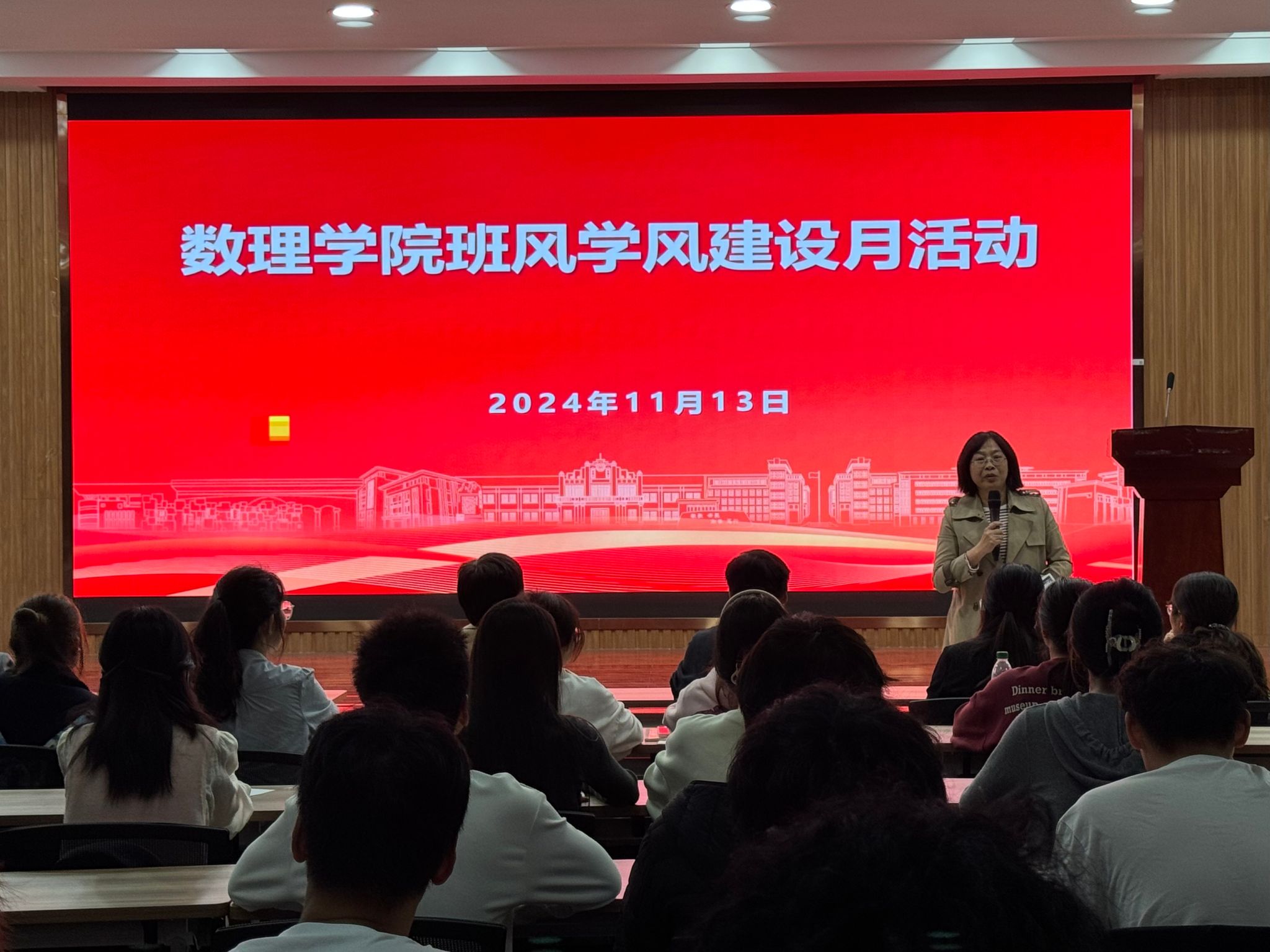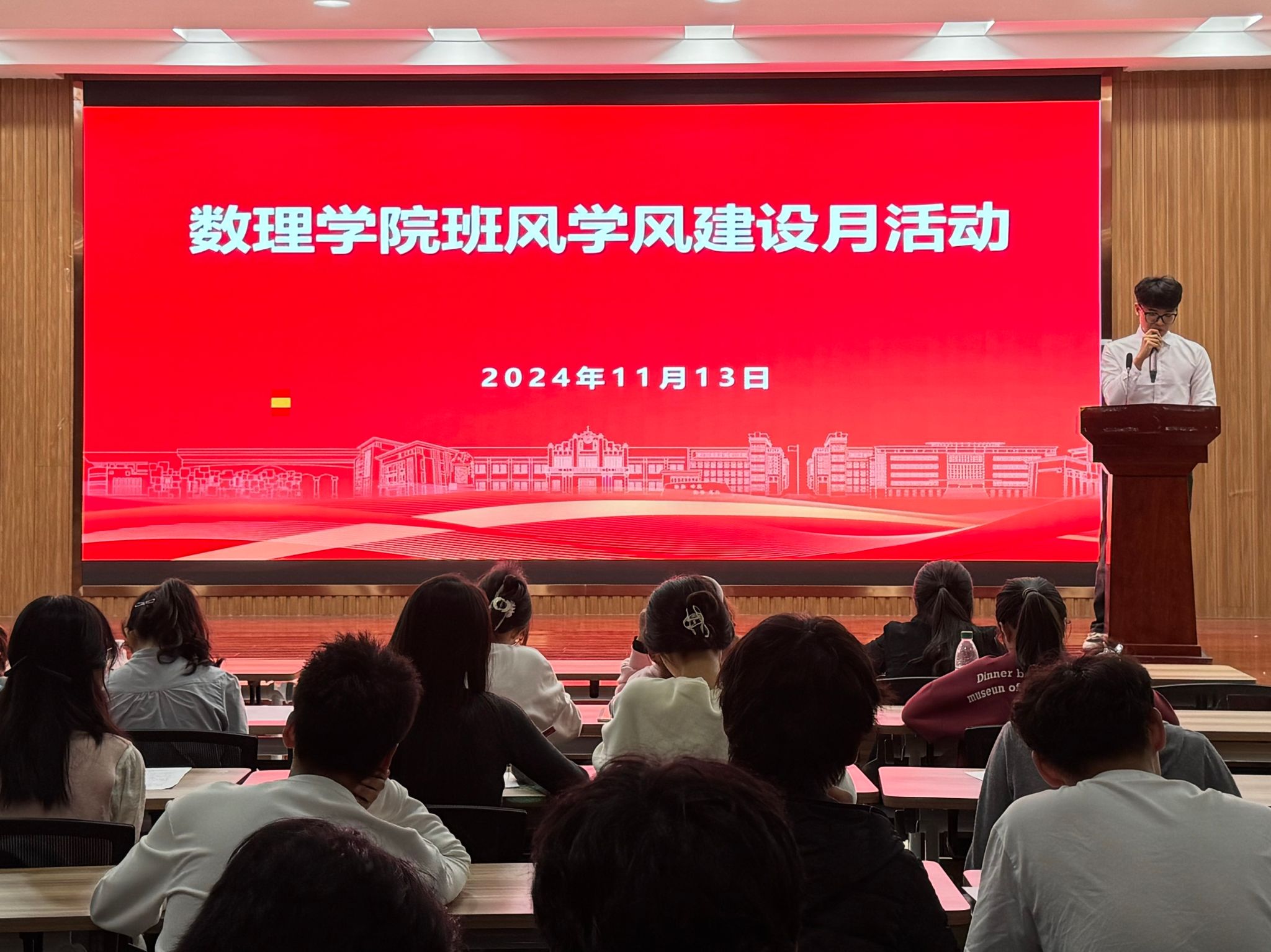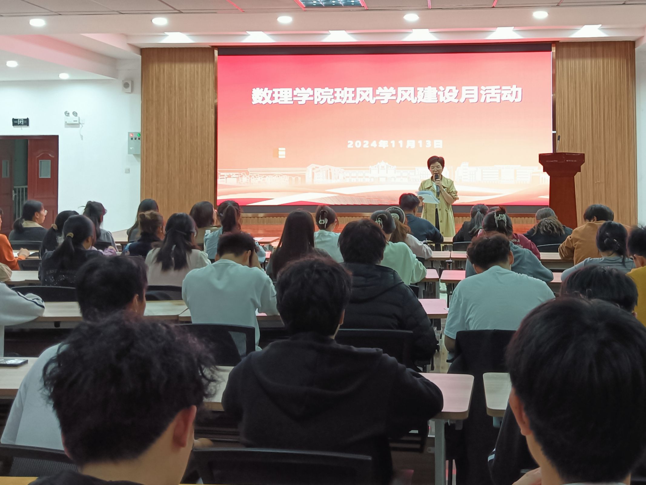 11月13日,数理学院于I楼401报告厅开展学风建设月活动启动仪式,数理学院副经理易明芳、党委副书记彭芳珍出席活动,学院全体辅导员、班级班委代表、员工会骨干等近200名员工参加。