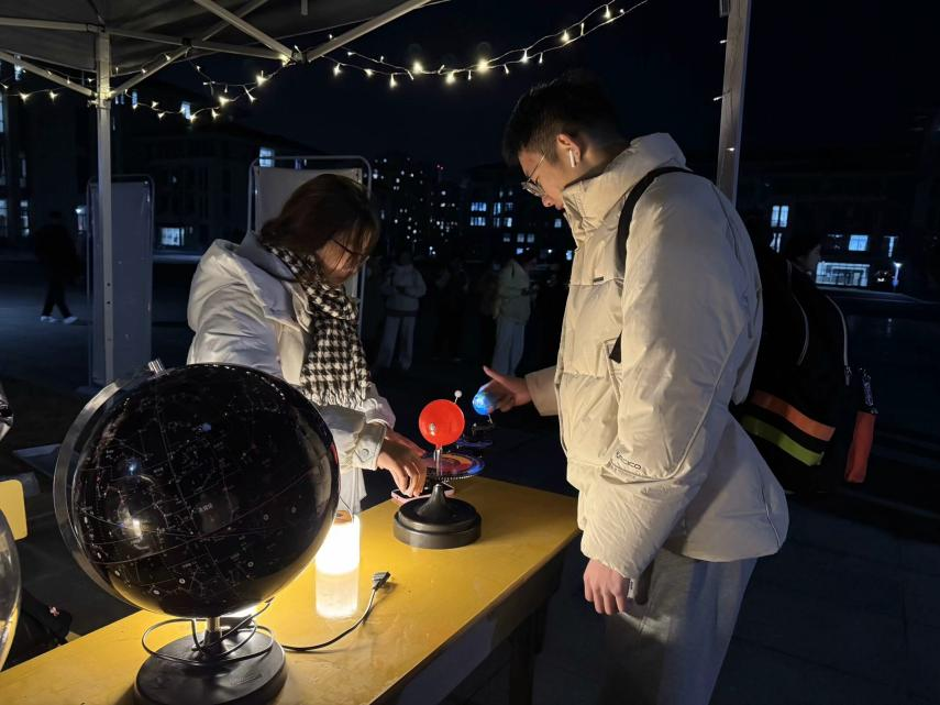 12月17日晚,数理学院老员工天文爱好者协会联合心理健康工作站、物理学教师党支部,在数理学院楼前广场开展了一次主题为“心有繁星,沐光而行”的天文之夜特色科普活动。