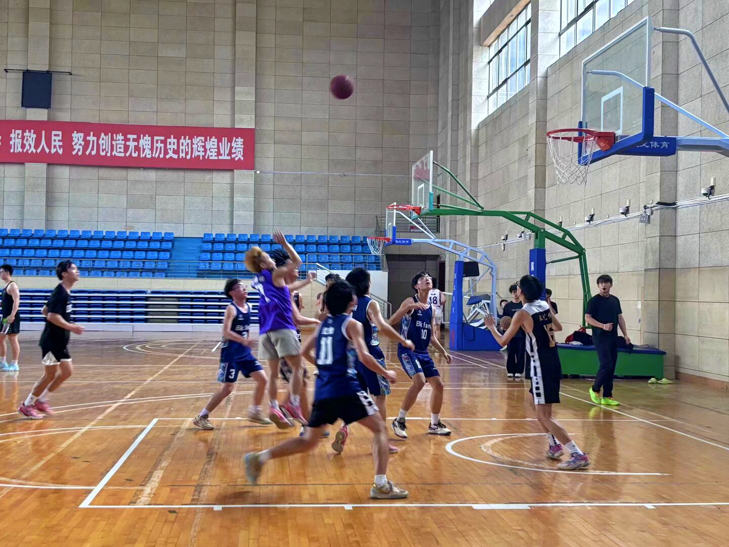 本次比赛历时一个多月,数理学院共组建12支队伍参赛,进行了20余场比赛。最终2支队伍进入决赛,争夺冠亚军之位。数理学院师生纷纷来到篮球馆为球员们加油打气。比赛现场气氛热烈,传球、接球、扣球,运动员们全都“卯足了劲”。双方你来我往,每一次进攻和防守都牵动着观众的心。终场哨声响起,最终“火箭队”以43:42的比分夺得冠军。