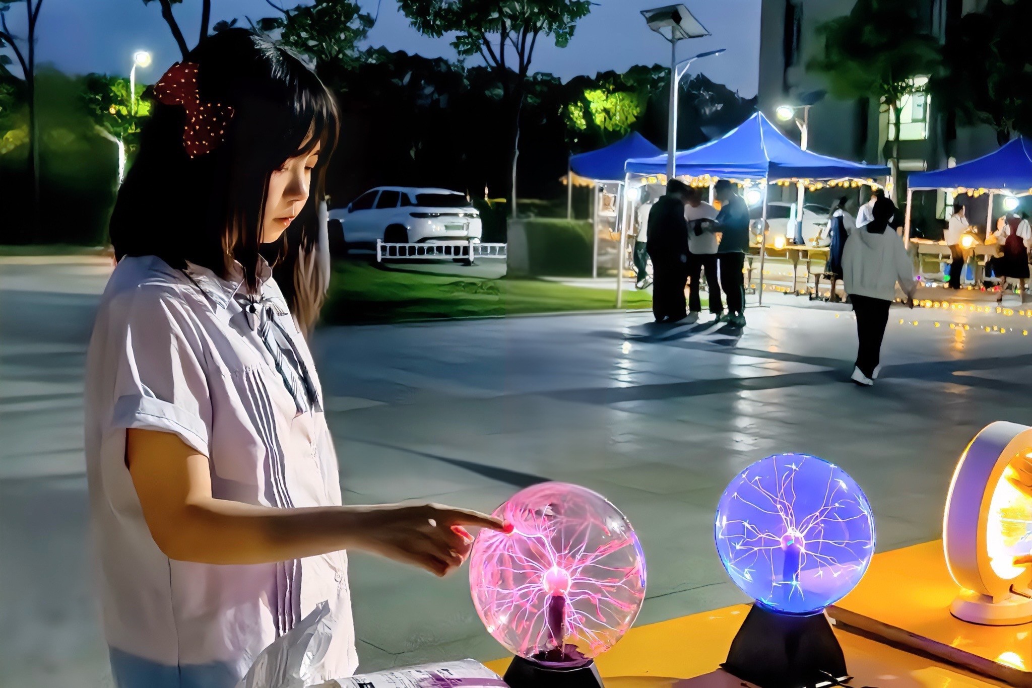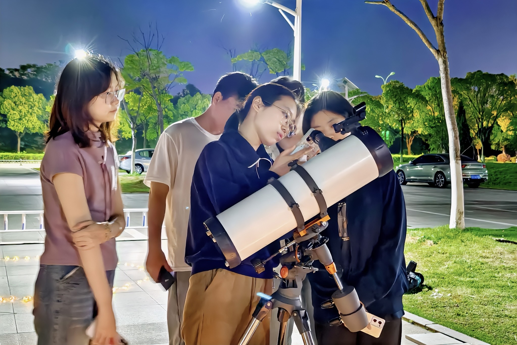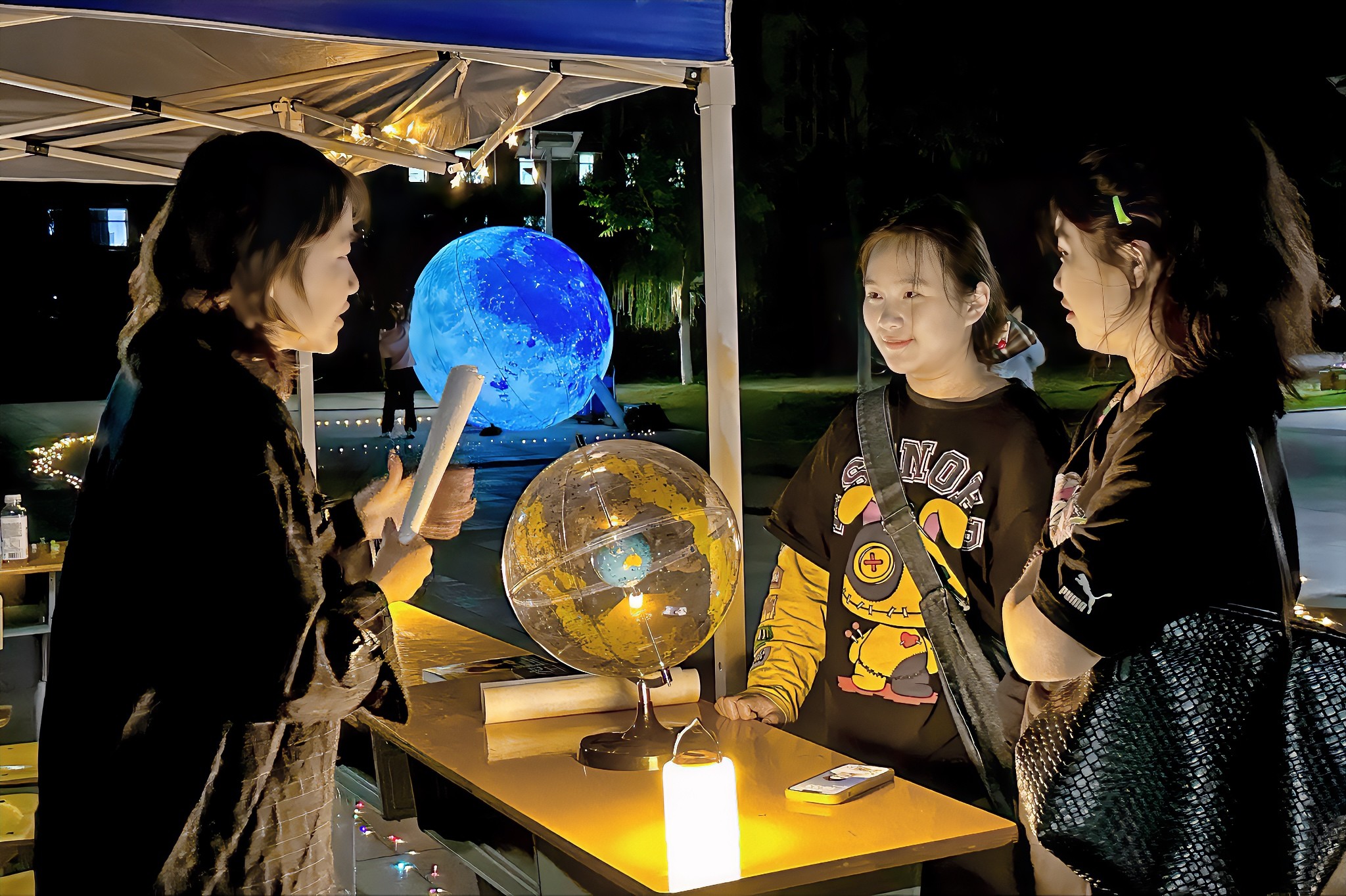散发着“闪电”的“魔法闪电球”、追随着星辰轨迹的天文望远镜、彰显着我国航天成就的航天模型……近日,数理学院老员工天文爱好者协会主办的“天文之夜”活动在数理学院楼前广场有序开展,近千名学子参与其中,感受独属于天文的魅力。