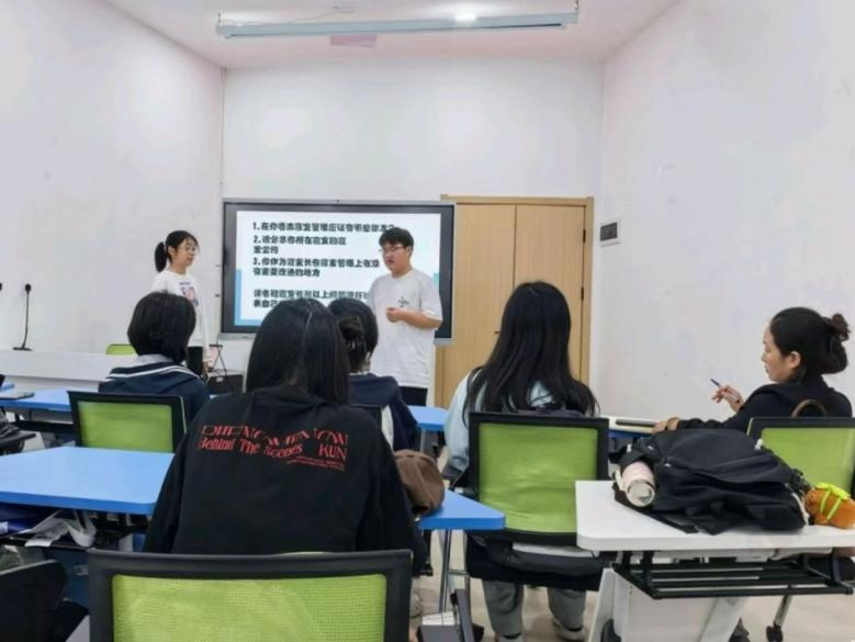 此次活动通过班级心理联络员工作会议部署,会议上,主持人向寝室长们详细介绍活动意义、规则及安全注意事项,鼓励寝室长发挥引领作用,带动室友踊跃参与,营造积极向上的寝室氛围,凝聚寝室力量,展现青春风采。