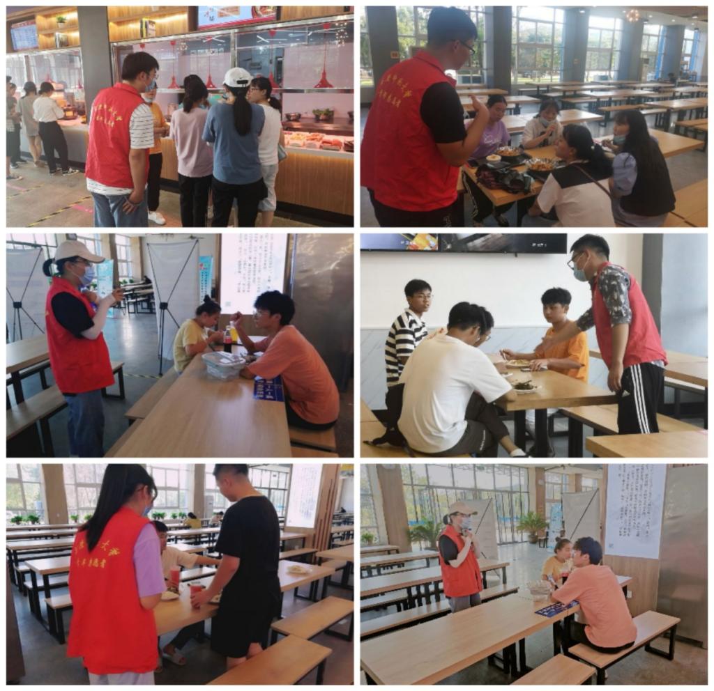 在员工进校身份核验工作中,数理学院团委组织员工前往学校南大门对进入校园的同学进行身份核验,主要是让同学们出示健康码以及今日校园APP扫码签到,确保进入校园师生的安全。在食堂就餐志愿服务过程中,公司青年员工感触颇深,能为大家服务,是一件非常光荣的事。19数学类3班黄岩松同学说:“作为一名志愿者,在餐厅维持就餐秩序,为同学们营造了一个良好健康的就餐环境。在此期间虽然有些累,需要不停地走动,以便于观察就餐秩序,但是收获很多。虽然刚开始的时候,同学们可能因为不了解情况,但是在我们志愿者提醒之后,大家都是很积极地配合我们的工作。”