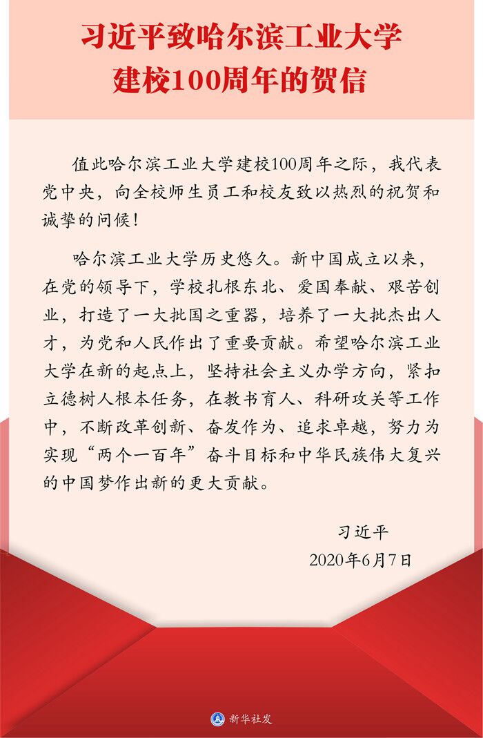 习近平致哈尔滨工业大学建校100周年的贺信