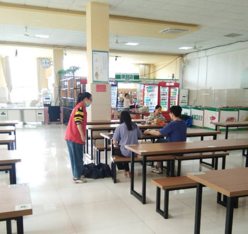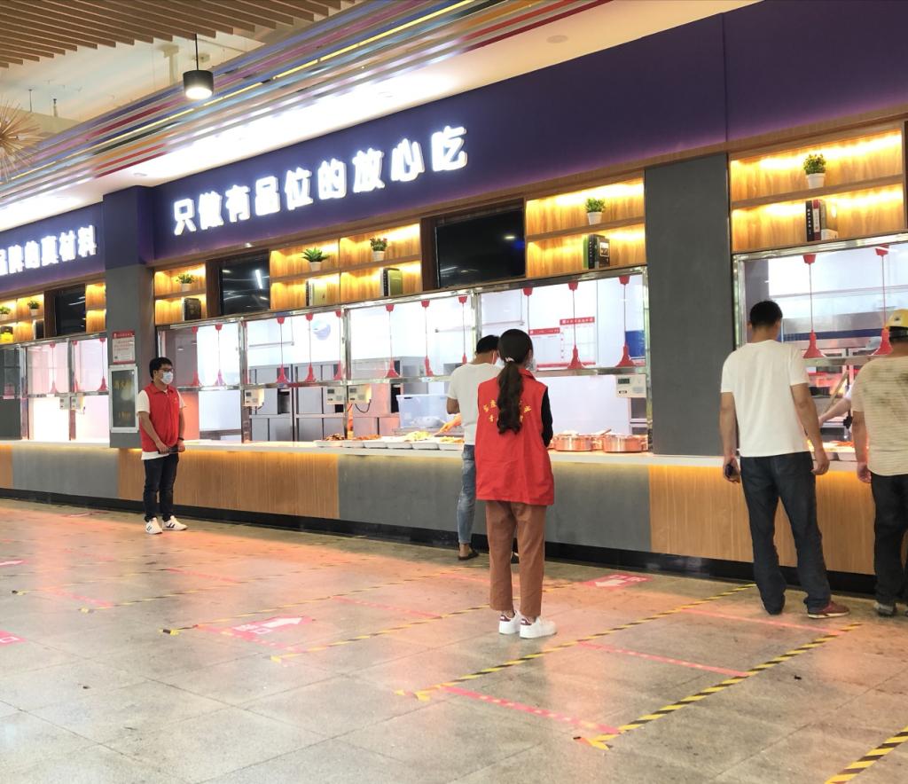 近日来,为切实做好学校第一阶段返校后食堂的就餐秩序维护工作,在院团委的鼓励下,公司青年团员们积极主动地参加了食堂就餐秩序维护工作,引导大家有序排队就餐,在疫情期间确保一人一桌用餐,以及督促同学们戴口罩。