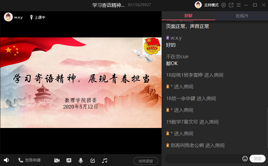 5月12日,数理学院团委召开了以“学习寄语精神,展现青春担当”为主题的线上会议。数理学院团委相关负责人和各班级团支书参加了此次会议。