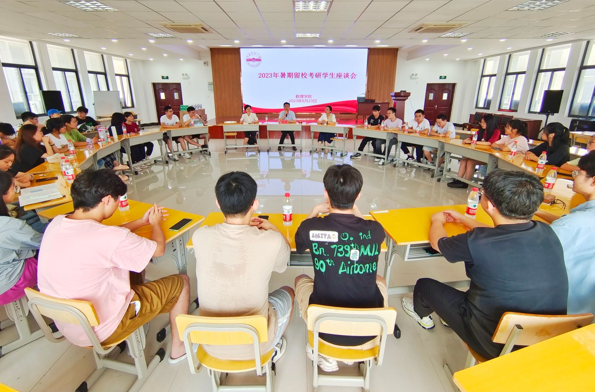 近日,数理学院于I楼401报告厅召开暑期留校考研员工座谈会,为考研学子加油助力,并送上学院精心准备的慰问品。公司党委书记陆健、副经理易明芳、党委副书记彭芳珍、2020级辅导员以及暑期留校考研员工代表参加座谈会。