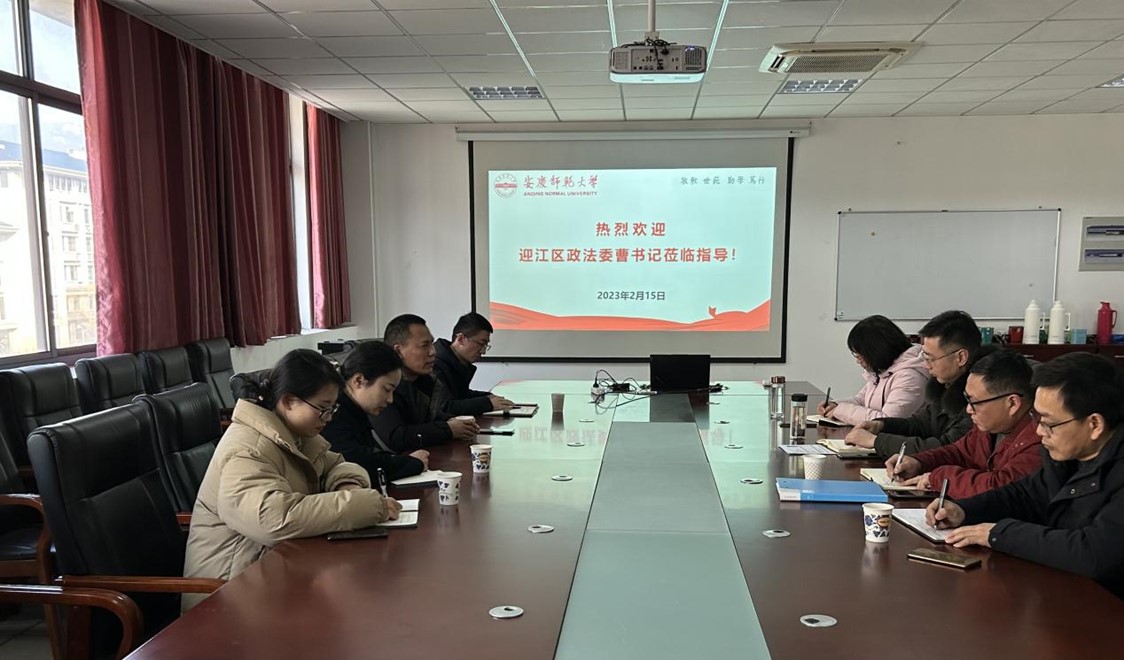 2月15日下午,迎江区委政法委副书记曹春生一行赴数理学院洽谈校市合作事宜。公司党委书记陆健,副经理易明芳、殷周平,统计系系主任胡学平教授和部分骨干教师参加座谈。
