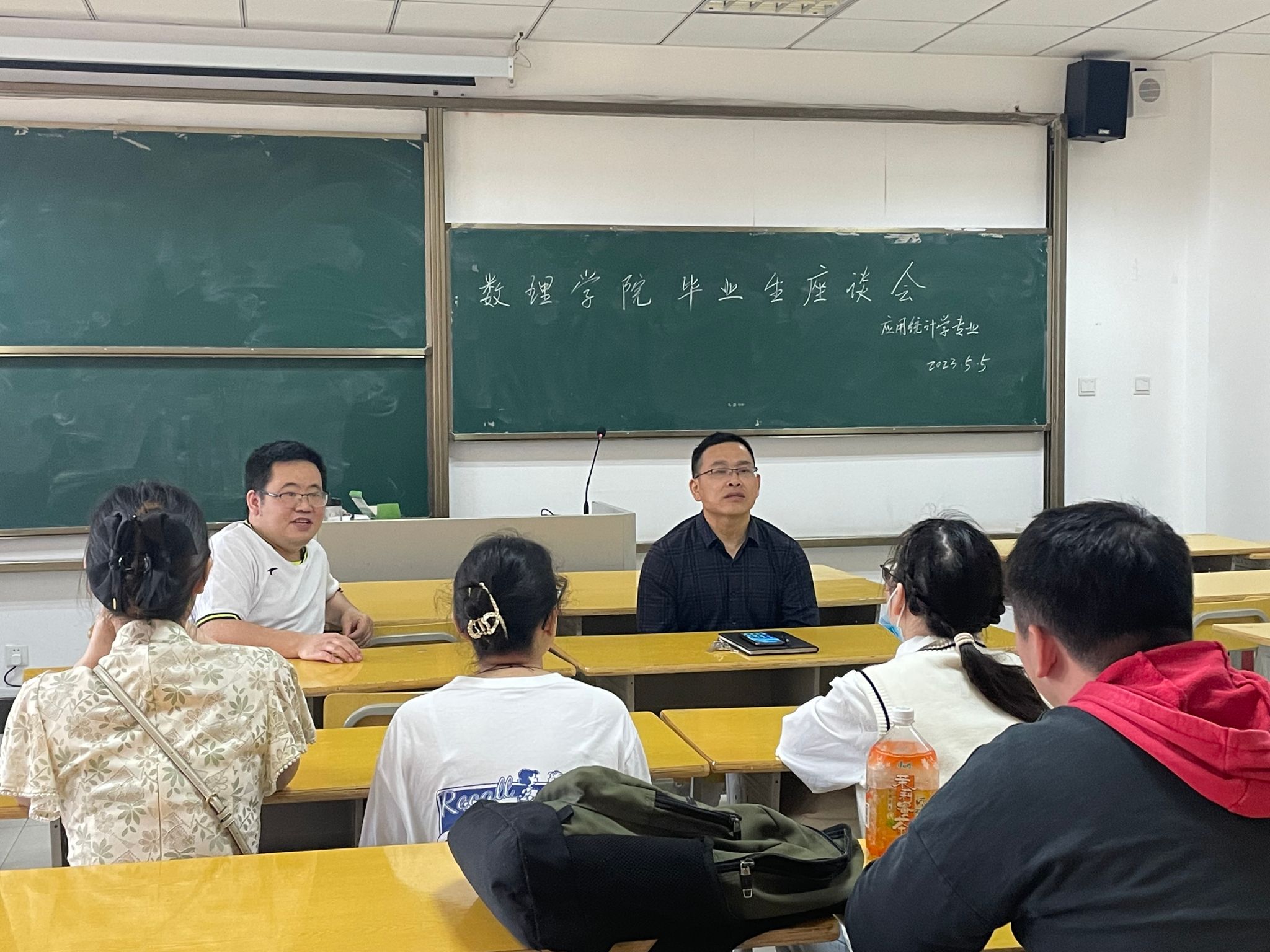 为做好2023版人才培养方案的顶层设计,广泛听取员工意见,5月5日中午,数学与应用数学、物理学、应用统计学、信息与计算科学等4个专业分别在数理楼204、502、503教室召开2023届毕业生代表座谈会。会议由各系主任主持,教研室主任、各专业毕业生代表、教学办公室工作人员参加了会议。