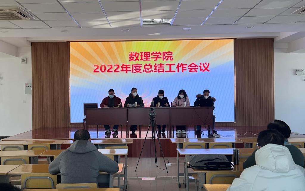经理申传胜首先传达了学校2022年度总结工作会议精神,重点强调了学校学期末抓好党的建设、公司产品、高峰培育学科和博士点立项建设、人事人才、科学研究、校市合作、校园安全、迎接省委综合考核等14项重点工作。同时总结回顾了数理学院2022年各项工作的进展情况和主要成果,并布置近期和寒假重点工作。
