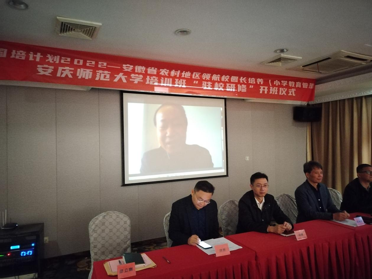 10月12日,“国培计划----2022农村地区领航校园长培养(小学教育管理)”安庆师范大学培训班“名校跟岗、驻校研修”开班式在杭州市滨江实验小学举行。开班式采取线上线下方式同步举行,省教育厅“国培计划”办公室主任钱雯教授、安庆师范大学继续教育学院经理韦长发等线上出席会议,数理公司党委书记陆健、副经理殷周平,杭州市滨江实验小学教育集团董事长、特级教师、正高级教师张翼文等出席线下会议。