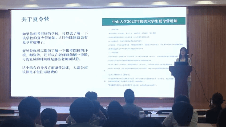 成功考取华东师范大学光学专业研究生的胡瑾同学结合自身经历,从院校选择、备考经验和心态调整三个方面向同学们分享备考经验,鼓励同学们道阻且长,行则将至。参加中山大学优秀老员工夏令营并成功考取中山大学天文学方向研究生的杨心怡同学从择校、备考和心态方面告诉同学们如何准备,并介绍了申请夏令营的具体流程,提醒同学们提前准备个人简历和推荐信。考取吉林大学物理学专业的李成成同学提出关于考研科目的建议,指出选择合适自己的院校十分重要,为同学们点明了道路。考取苏州大学物理学方向的何振豪同学详细讲解了各科目在不同阶段下的复习方法与技巧并推荐了复习书籍和网课资料。调剂到安徽大学和中科大联合培养的陈宇凯同学向大家讲述了自己考研与调剂的曲折历程,介绍了调剂的基本流程、调剂前的准备以及调剂中的注意事项,鼓励同学们沉住气坚持到最后。考取安徽师范大学的李岳峰同学针对不同考研科目,向同学们详尽地传授了学习经验和考研心得。