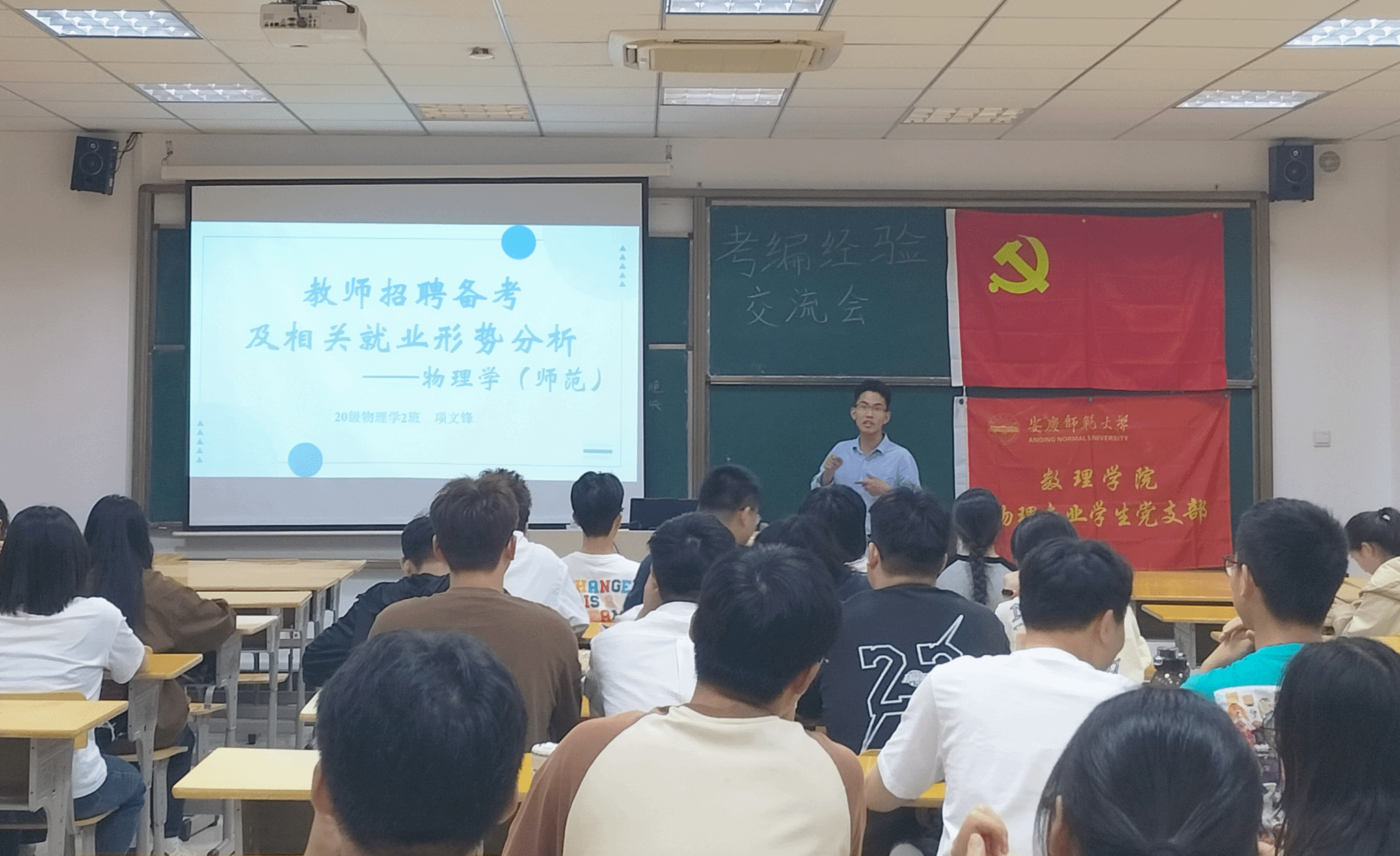 5月10日,数理学院物理专业员工党支部举办了2024届优秀毕业生经验分享交流会,邀请了2020级物理学专业成功考取教师编制的朱欣然、何建华、项文锋、李喆等四位同学,重点分享了备考教师编制考试的相关经验。党支部所有党员、入党积极分子以及2021级、2022级物理专业100余名同学参加了此次分享会。活动由物理专业员工党支部书记李仪老师主持。