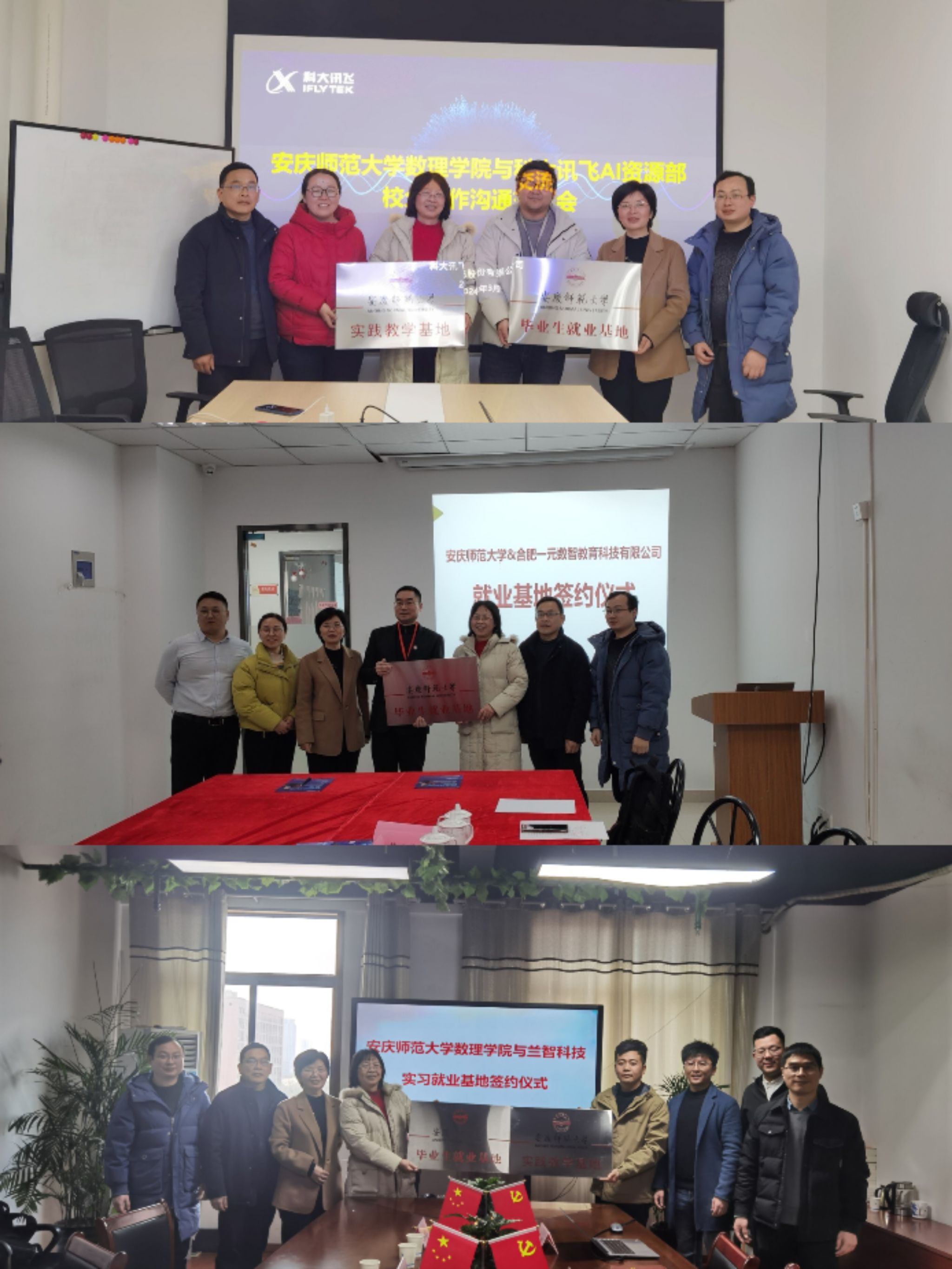 3月8-9日,数理学院副经理易明芳、党委副书记彭芳珍一行赴合肥开展“访企拓岗促就业”专项活动,实地走访了科大讯飞股份有限公司、合肥一元教育咨询有限公司以及安徽兰智大数据科技有限公司等三家企业,围绕校企合作、实习就业基地建设进行了座谈。