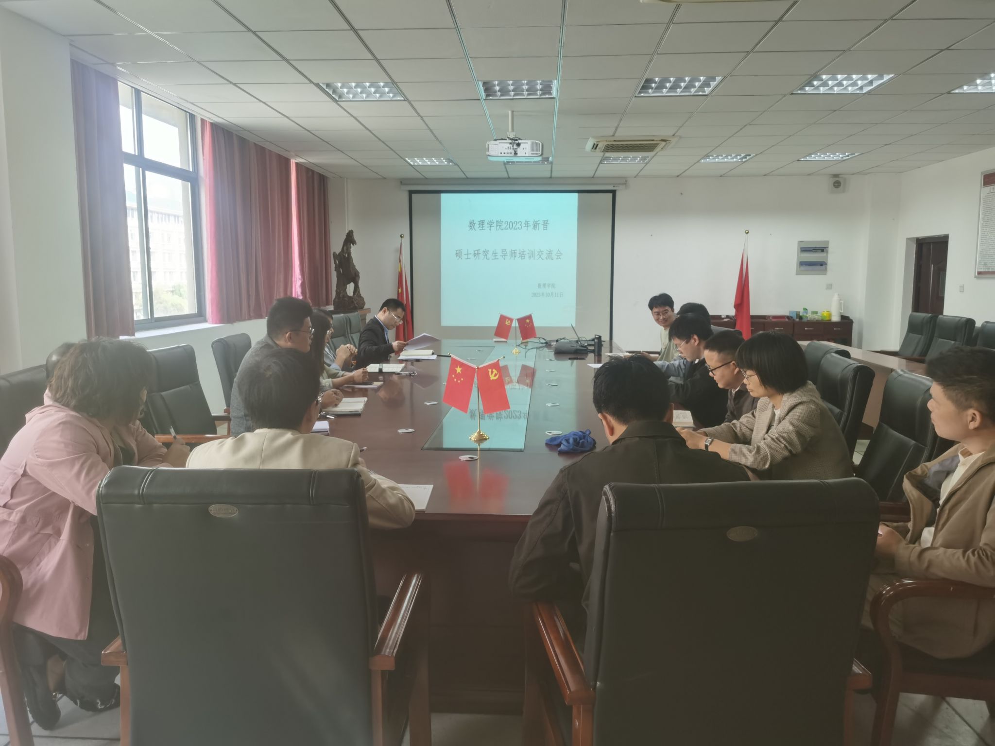 2023年10月11日下午,数理学院在I307会议室召开了新增研究生导师培训交流会。会议由数理学院副经理伍代勇教授主持,统计学硕士点导师方官文研究员,学科教学(数学)硕士点点长舒阿秀副教授以及近年来新增硕士研究生导师参加会议。