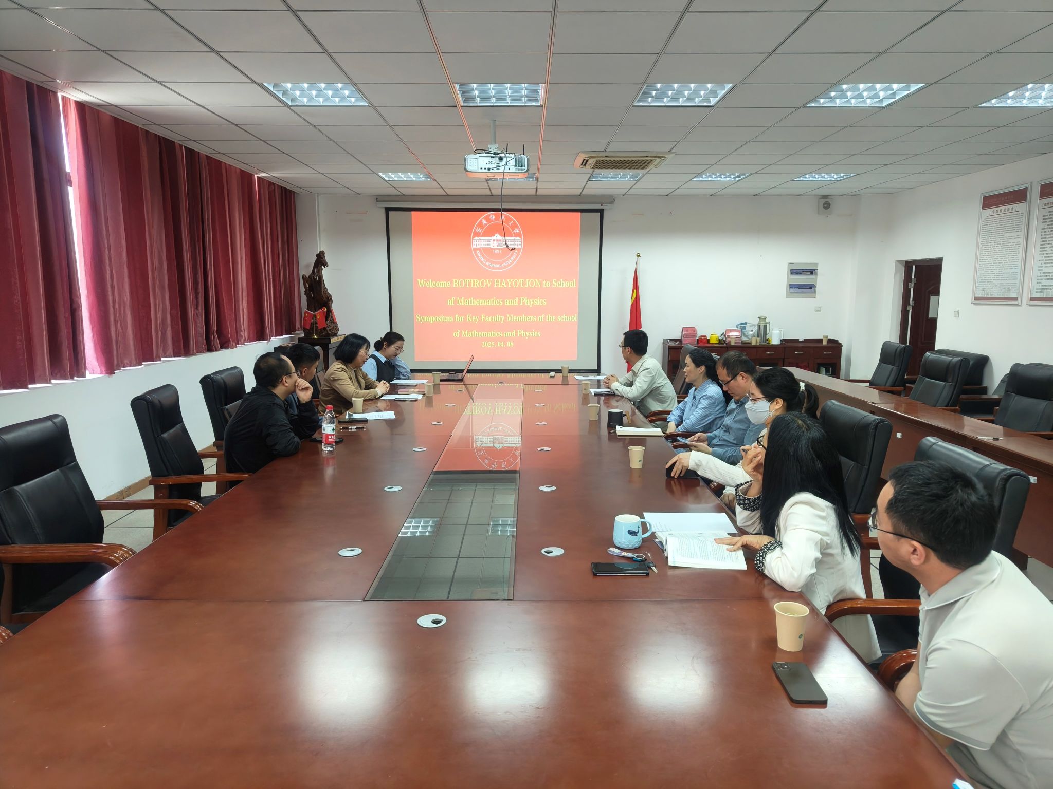 美好的时光总是这样匆匆,就像春日里绽放的樱花,刚刚惊艳了我们的眼眸,转眼便到了落英缤纷的时节。这段跨越国界的学术情谊,在思想的碰撞与智慧的交流中愈发深厚,却也在不知不觉中走向了尾声。4月17日,数理学院为乌兹别克斯坦卡尔希国立大学教师代表团举行欢送会。