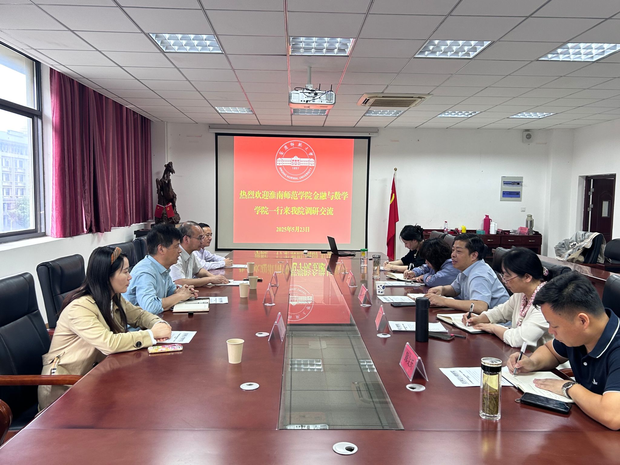 5月23日下午,淮南师范学院金融与数学学院副经理吴正飞一行4人来数理学院调研交流,数理学院经理张海、副经理易明芳及相关负责人参加交流会。张海主持座谈会。