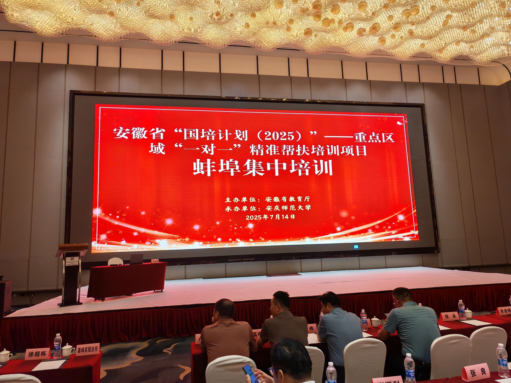 7月14日,安徽省国培计划(2025)“一对一”精准帮扶培训项目暑期集中培训在蚌埠市开班。数理公司党委书记陆健,副经理殷周平,工作专班人员范立刚,来自安徽省宿州市砀山县、灵璧县、泗县和萧县的263名学员参加开班仪式。开班仪式由殷周平主持。