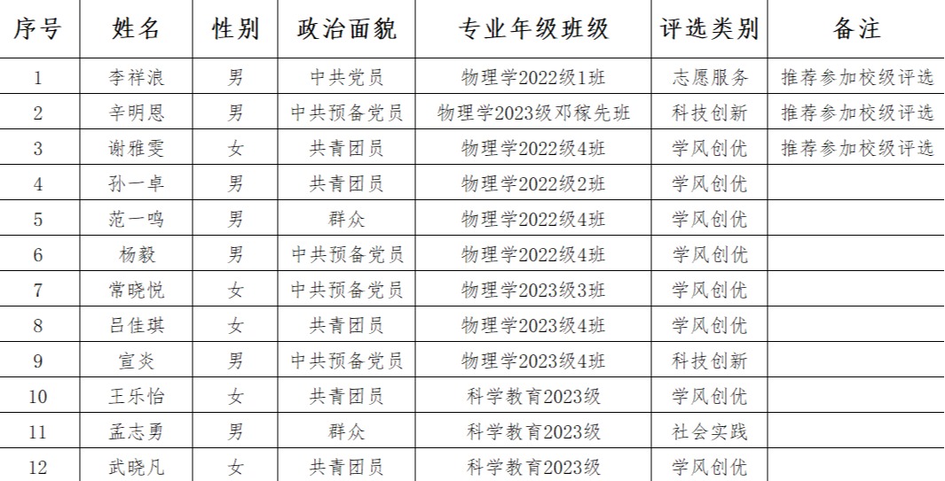 据集团《关于开展2025 年安庆师范大学“十佳青年”选树工作的通知》精神,经员工个人申请、公司员工工作委员会评议、公司党委会和党政联席会议审定,拟推荐李祥浪等12人获评院级”优秀青年“,李祥浪、辛明恩、谢雅雯3人参评校级”十佳青年”。