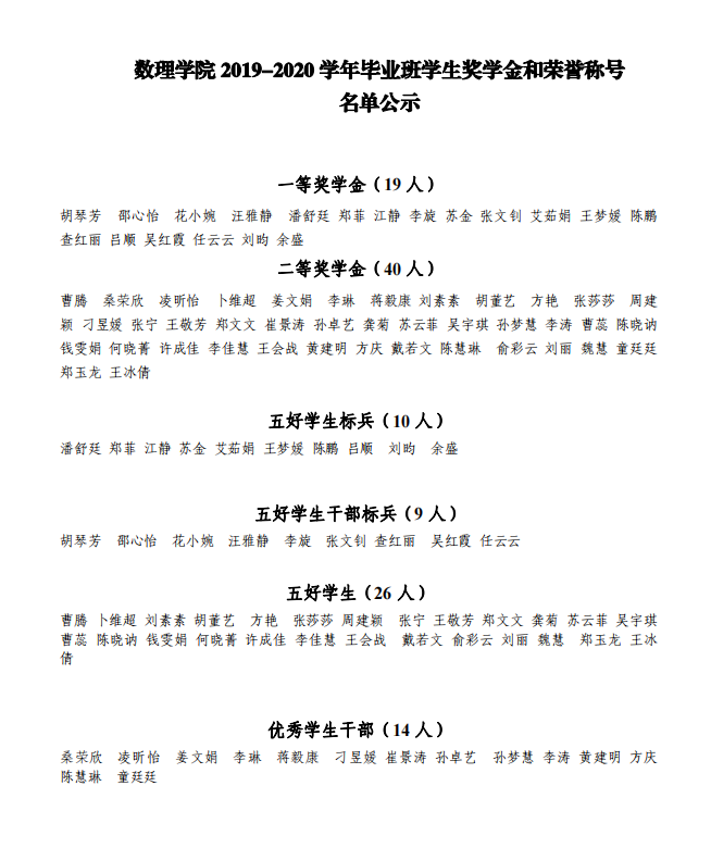 附件:数理学院2020-2021学年毕业班员工奖学金和荣誉称号名单