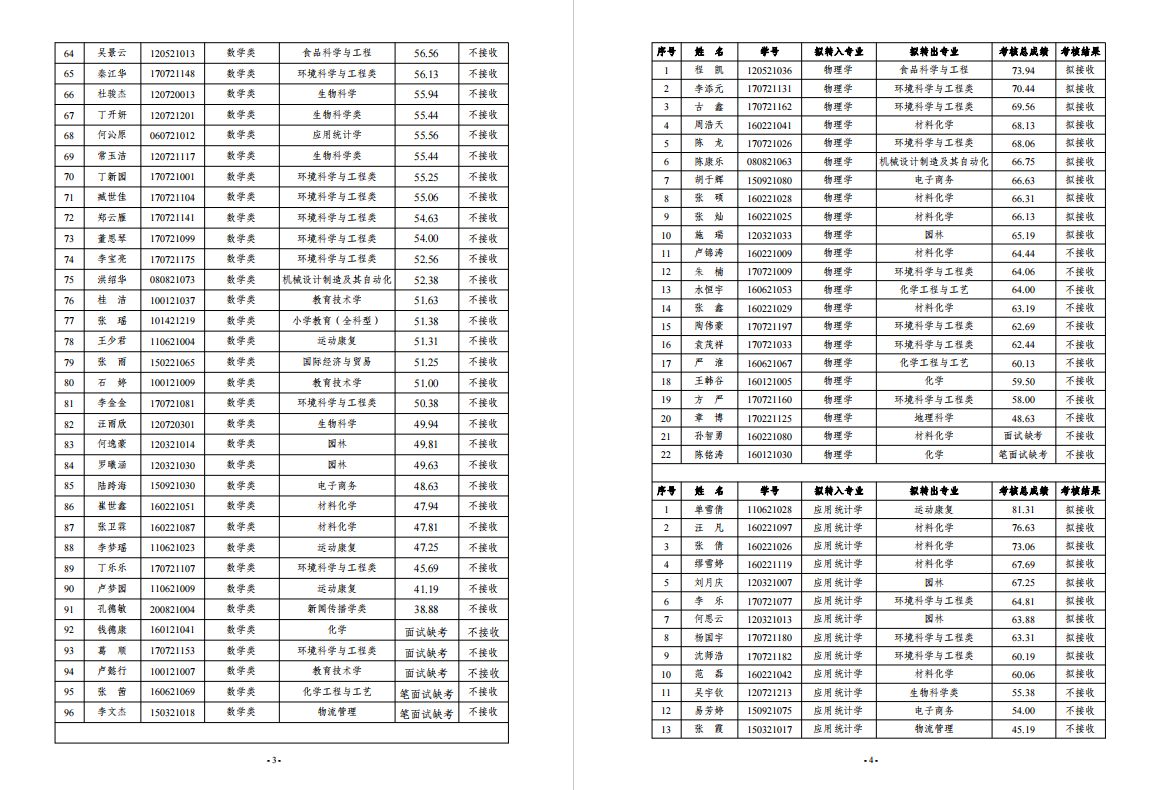 根据学校《关于2021-2022学年员工转专业工作的通知》和《数理学院关于2021-2022学年员工转专业工作方案的公告》要求,数理学院转专业考核工作组对131名申请转入员工进行了闭卷笔试和面试考核,考核结果经数理公司党政联席会议审定通过,拟接收籍多强等40名员工分别转入数学类专业、物理学专业和应用统计学专业学习,现予以公示(见附件)。