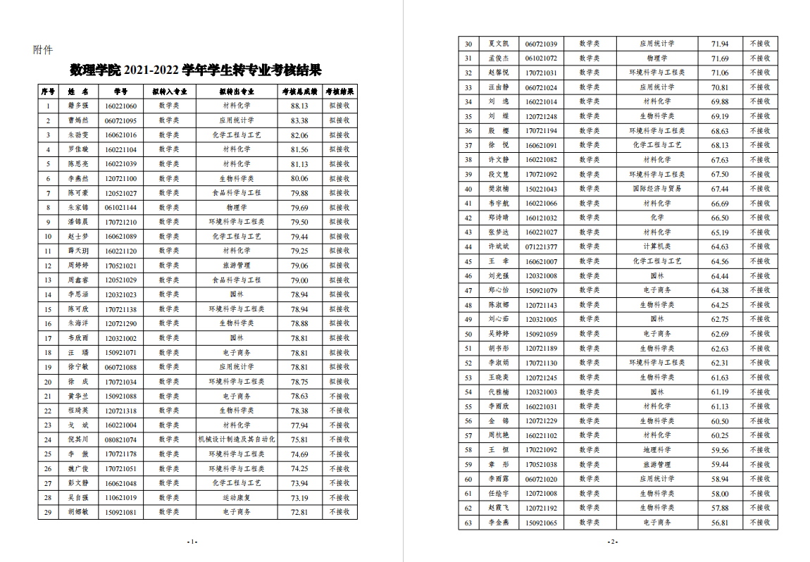 附件:数理学院2021-2022学年员工转专业考核结果